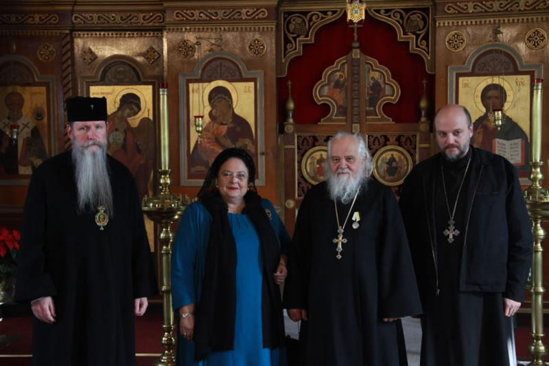 On December 11, Her Highness, escorted by Archbishop Kyrill and Fr Serafim, visited Stavropighial Novo-Diveevo Convent. The Grand Duchess began her tour by visiting the senior home, guided by Maria Nikolaevna Fedorovskaya, matushka of Protopriest Alexander, the Rector of the convent church. Then, the Head of the Russian Imperial House, accompanied by Vladyka Kyrill, Fr Serafim and Fr Alexander Fedorovsky, visited the convent’s St Seraphim of Sarov Church, where a troparion was sung to the patron saint, and Many Years to Her Highness and her son, Grand Duke Georgy Mikhailovich. Grand Duchess Maria Vladimirovna then awarded Fr Alexander the Imperial Order “Jubilee of the All-Russian Podvig .”
