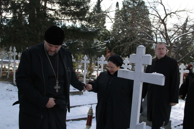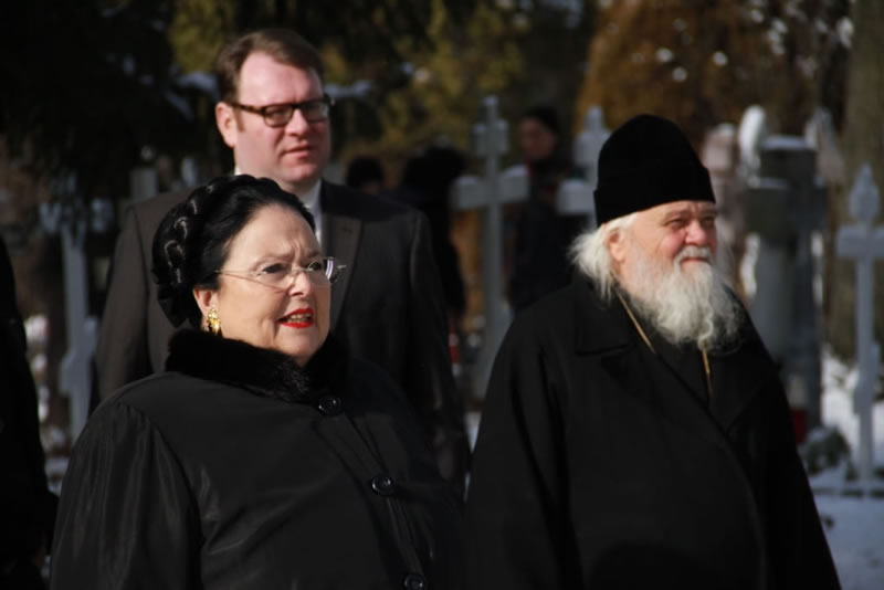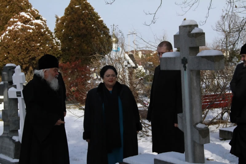 The Grand Duchess then toured the cemetery with the clergymen, where she honored the gravesites of her compatriot emigres. Eternal Memory was sung at the gravesites of His Imperial Highness Georgy Konstantinovich and Her Imperial Highness Grand Duchess Vera Konstantinovna, along with “all Orthodox Christian lain here.”