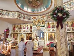 On Tuesday, January 7, 2014, the great holiday of the Nativity of Christ, Divine Liturgy was celebrate at the Synodal Cathedral of Our Lady �of the Sign� in New York, NY, headed by His Eminence Archbishop Gabriel of Montreal and Canada. Vladyka Gabriel was joined in the service by Senior Priest of the cathedral, Protopriest Andrei Sommer; Priest Nicholas Olhovsky, Caretaker of the Kursk-Root Icon of the Mother of God "of the Sign"; Hieromonk Evtikhy (Dovganyuk); Protodeacon Nicolas Mokhoff; Deacon Nathan Mousselli; Deacon Nazary Fataliev and Deacon Dionisy Lvov. The Christmas services were celebrated in the presence of the Kursk-Root Icon of the Mother of God. Mr Peter Fekula directed the Cathedral Choir at the services. After Liturgy, the clergymen and parishioners were invited to a festive trapeza prepared by the cathedral sisterhood.