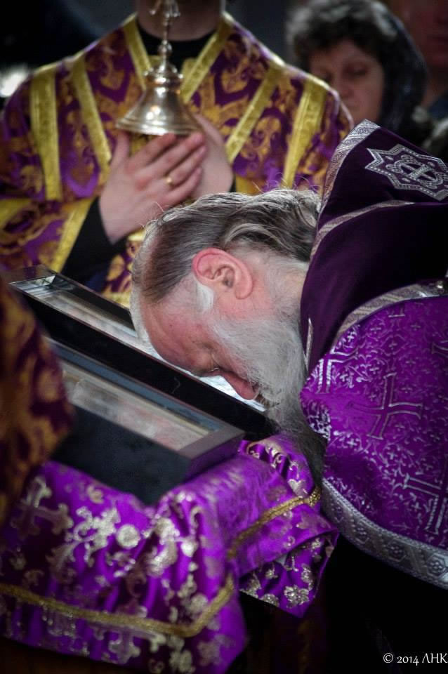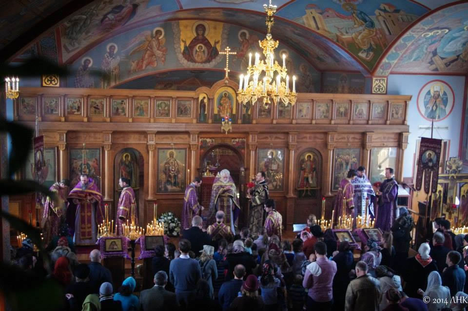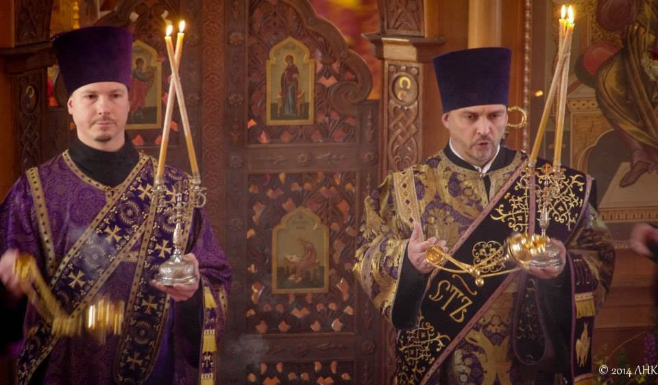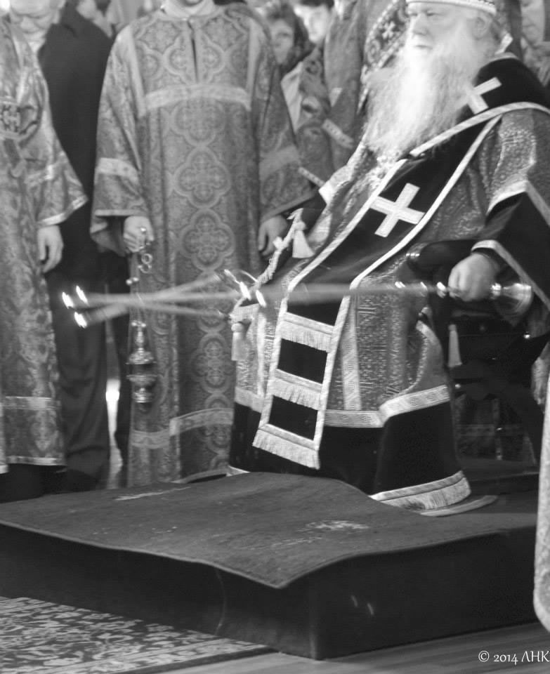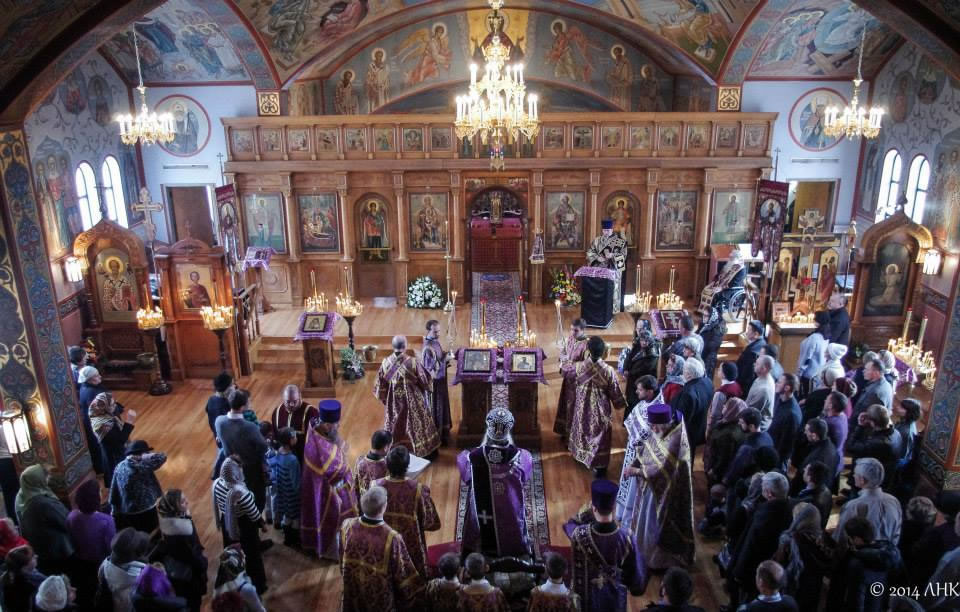 On Sunday, March 9, 2014, the Sunday of the Triumph of Orthodoxy, His Grace Bishop Peter of Cleveland, Administrator of the Diocese of Chicago and Mid-America of the Russian Orthodox Church Outside of Russia, celebrated Divine Liturgy at Holy Virgin Protection Cathedral in Chicago, IL. He was joined by Protopriest Andre Papkov, Priest Valeri Vovkovsky, Priest Leonty Naidzions, with Protodeacon Vadim Gan and Protodeacon Alexander Kichakov. Praying in the altar during the service was His Eminence Archbishop Alypy of Chicago and Mid-America.