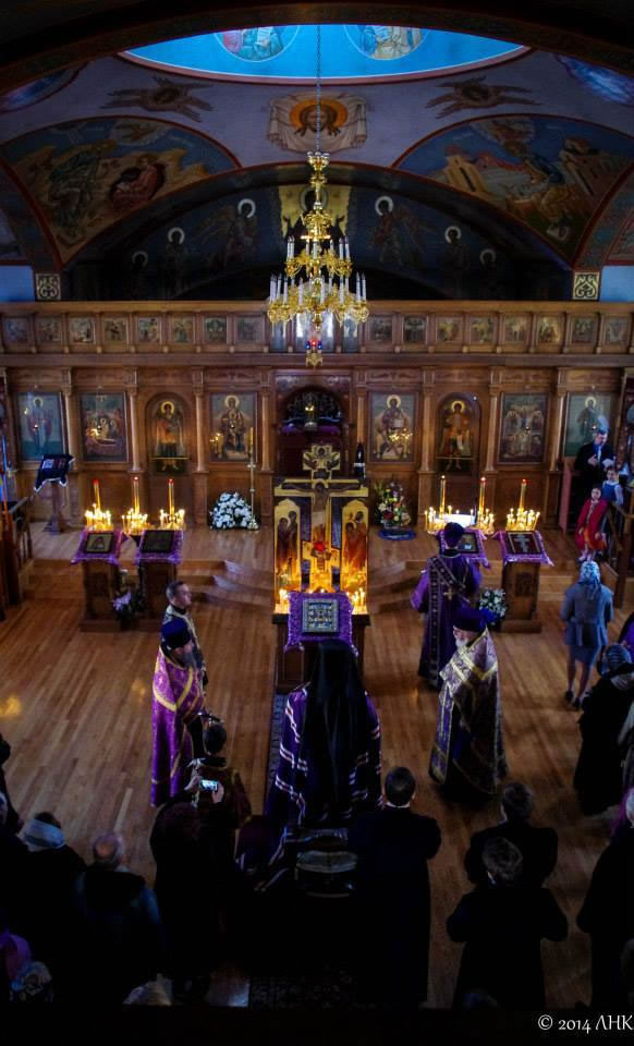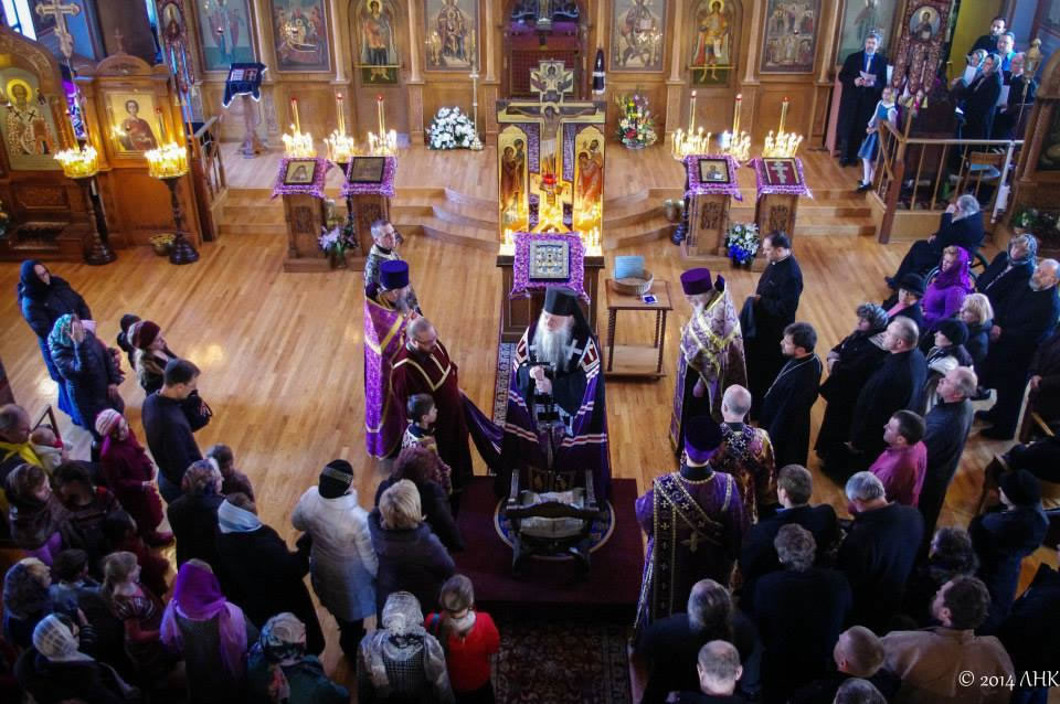 On Sunday evening, March 16, 2014, His Eminence Archbishop Alypy of Chicago, His Grace Bishop Peter of Cleveland, the clergymen and parishioners of Holy Virgin Protection Cathedral in Chicago, IL, ceremoniously greeted the Miracle-working Kursk-Root Icon of the Mother of God "of the Sign." After the greeting and blessing of the faithful, the special Great-Lenten "Passion service" was performed, commemorating the Passions of Christ.