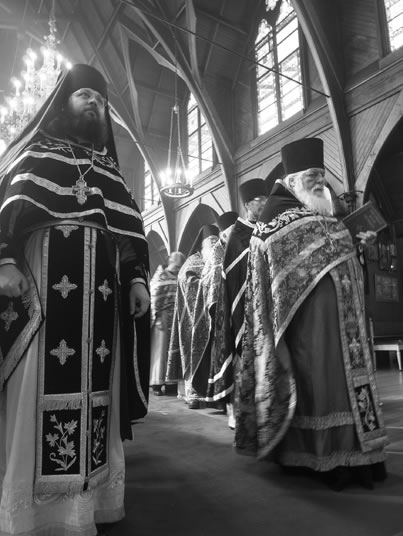 The Great Lenten Pastoral Retreat of the Western American Diocese of the Russian Orthodox Church Outside of Russia was held at the "Old" Holy Virgin Cathedral in San Francisco, CA, on March 17-19, 2014. The event concluded with Divine Liturgy, led by His Eminence Archbishop Kyrill of San Francisco and Western America and His Grace Bishop Theodosius of Seattle, Vicar of the Diocese, along with the diocesan clergymen.