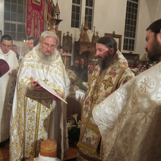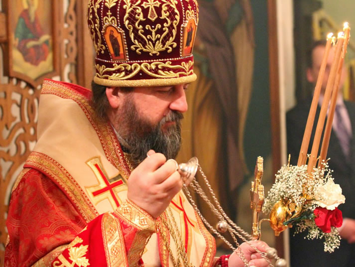 On Sunday, April 20, 2014, the day of Holy Pascha, the night-time divine services at St Nicholas Cathedral in Seattle, WA, were headed by His Grace Bishop Theodosius of Seattle, Vicar of the Western American Diocese, along with the Senior Priest of the Cathedral, Protopriest Alexei Kotar and the other cathedral clergymen.