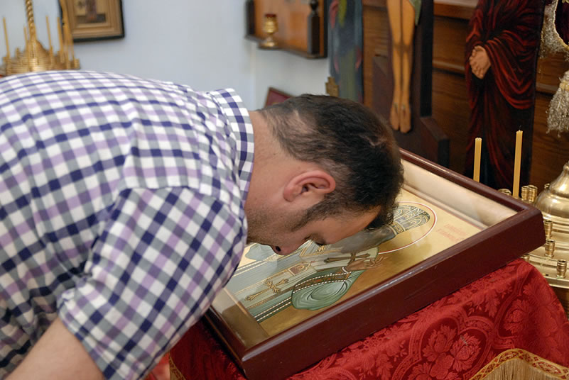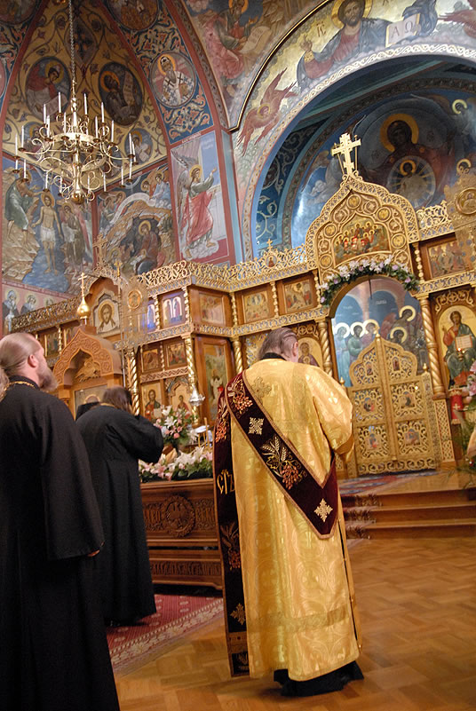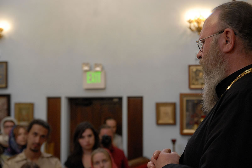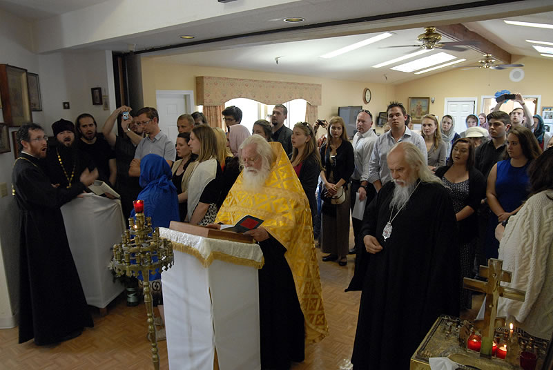 Monday, June 30, 2014, began for the youth with Divine Liturgy at the Cathedral of the Mother of God “Joy of All Who Sorrow,” at which the newly-consecrated Bishop Nicholas of Manhattan officiated for the first time as a hierarch. Praying at the service were the other members of the Council of Bishops, who are also participating in a session of the Synod of Bishops. The Kursk-Root Icon of the Mother of God "of the Sign,” whose caretaker Bishop Nicholas had been for several years, was present as well.