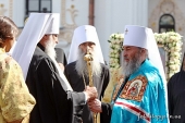 During the minor entrance, the eldest member of the Holy Synod of the UAC (by seniority of consecration), His Eminence Metropolitan Agathangel of Odessa and Izmailovo, read the decision of the Council of Bishops of the UOC on the election of Metropolitan Onouphry of Chernovitsa and Bukovino as the Metropolitan of Kiev and All Ukraine; while Metropolitan Ilarion, who is the President of the Department of External Church Relations of the Moscow Patriarchate read a decree of His Holiness Patriarch Kirill of Moscow and All Russia granting blessing to Vladyka Onouphry to become the Primate of the Ukrainian Orthodox Church.