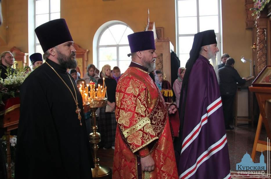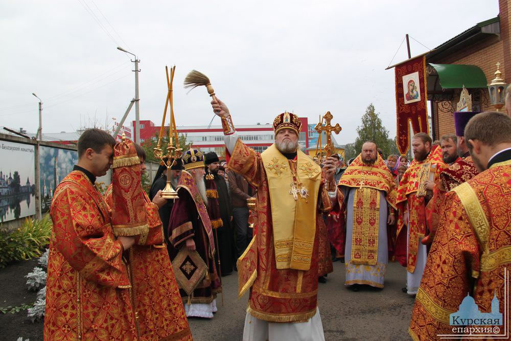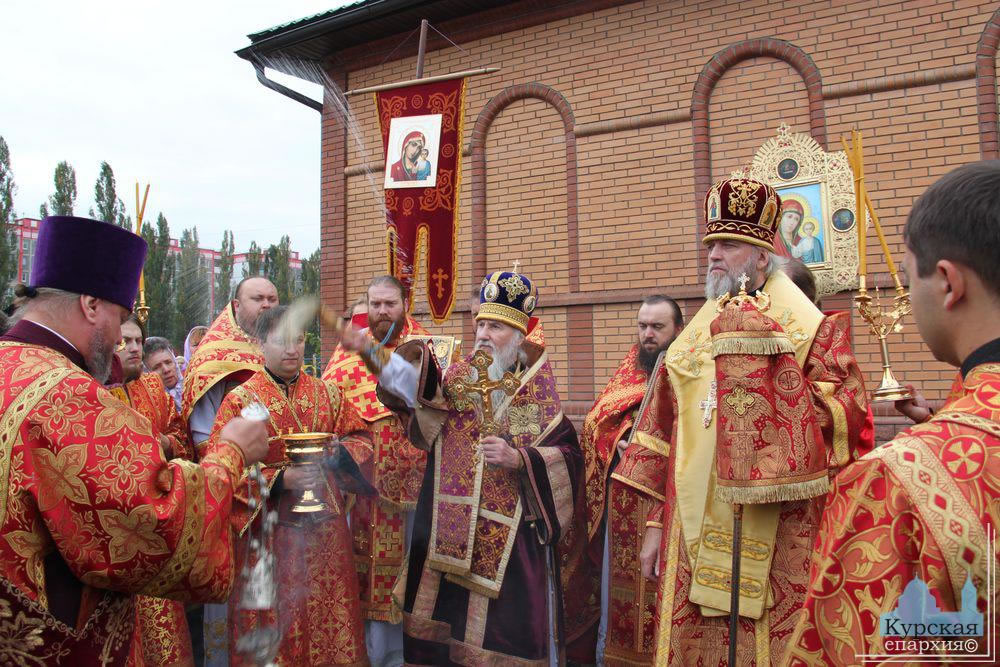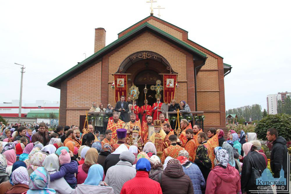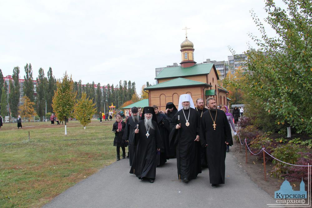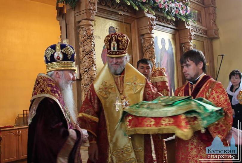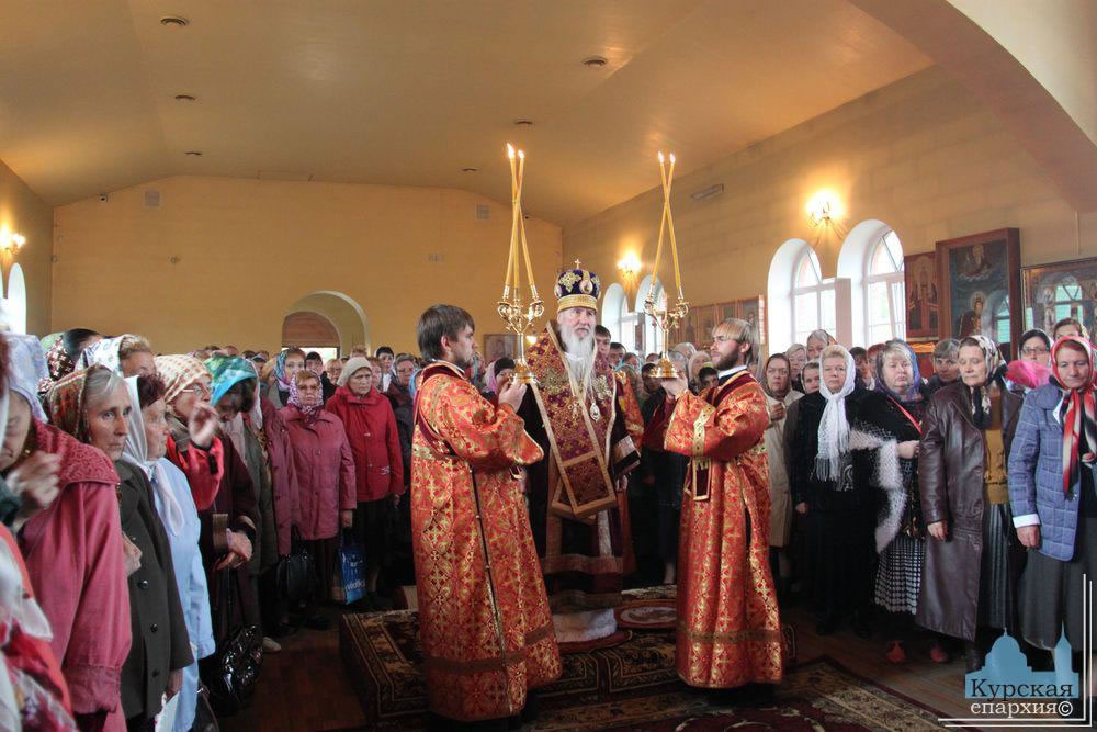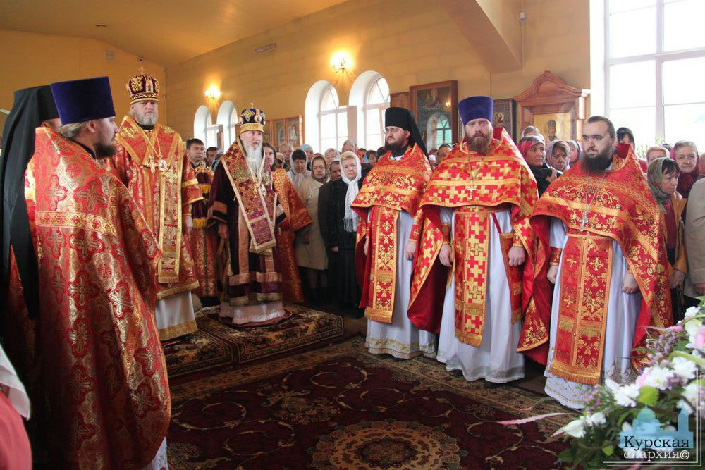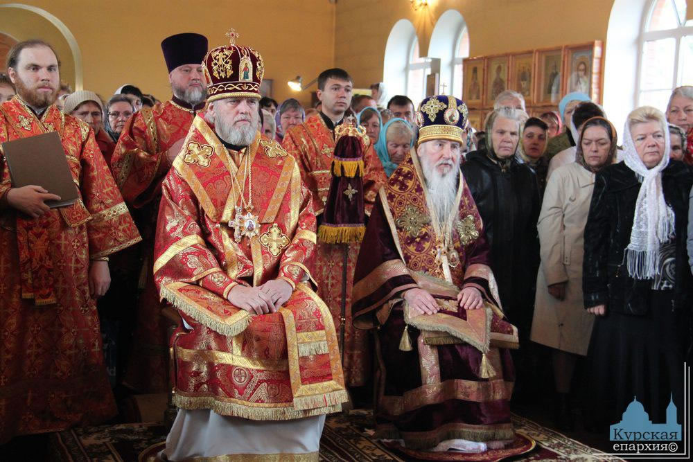 On September 30, 2014, the feast day of SS Vera, Nadezhda, Lubov and their Mother Sophia, His Eminence Metropolitan German of Kursk and Rylsk and His Eminence Archbishop Mark of Berlin and Germany, who is leading a delegation of clergymen of the Russian Orthodox Church Outside of Russia, celebrated Divine Liturgy in the church dedicated to the saints in north-west Kursk.