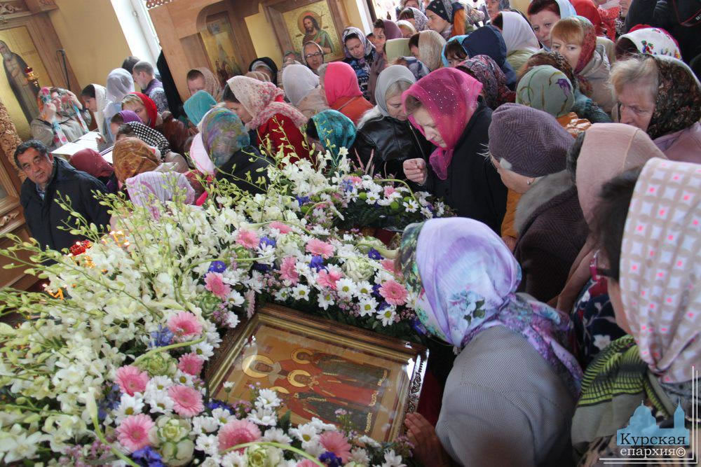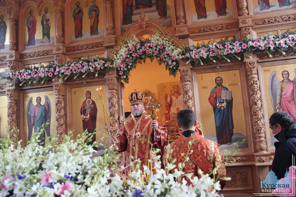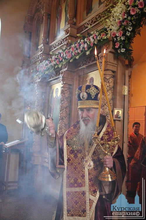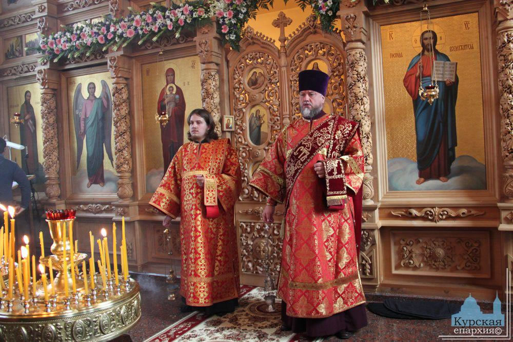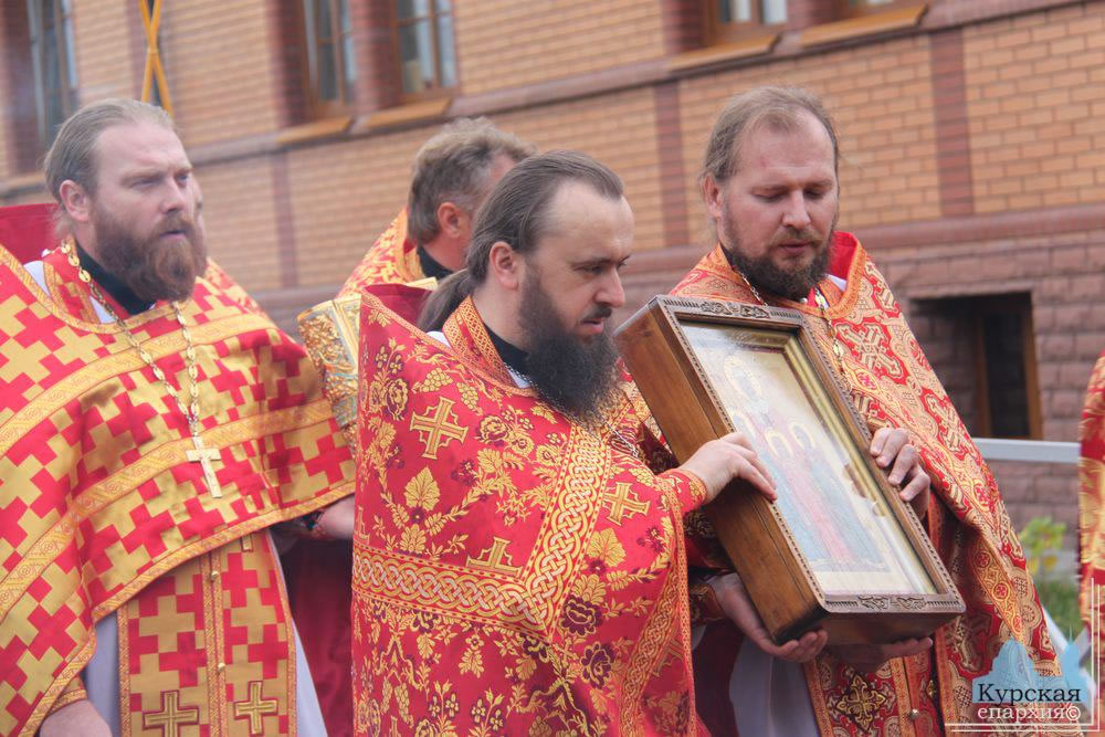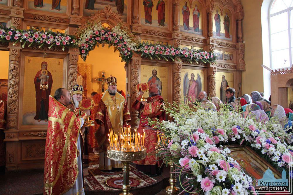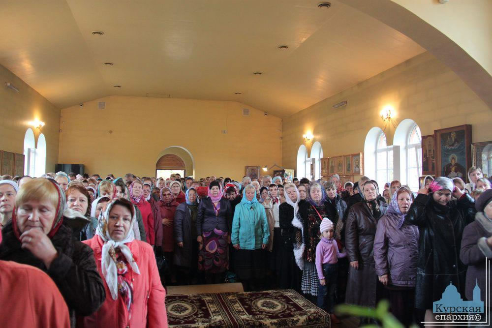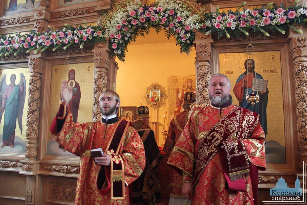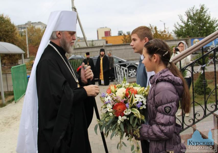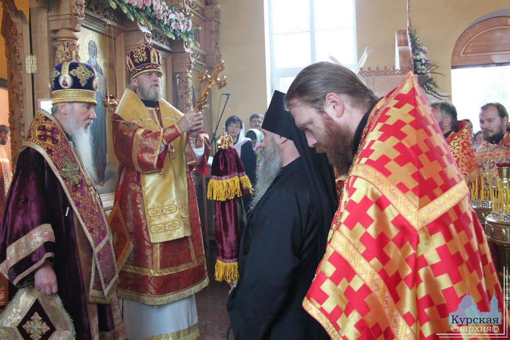 On September 30, 2014, the feast day of SS Vera, Nadezhda, Lubov and their Mother Sophia, His Eminence Metropolitan German of Kursk and Rylsk and His Eminence Archbishop Mark of Berlin and Germany, who is leading a delegation of clergymen of the Russian Orthodox Church Outside of Russia, celebrated Divine Liturgy in the church dedicated to the saints in north-west Kursk.