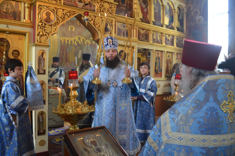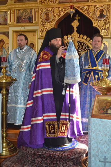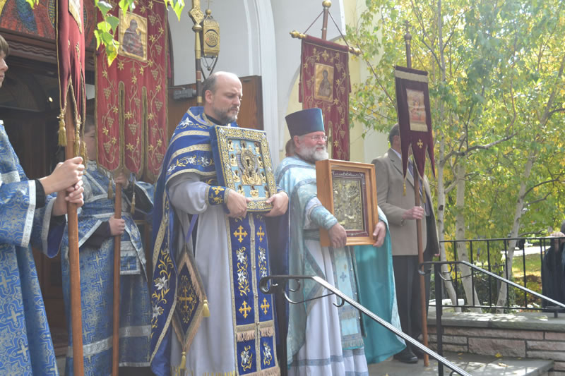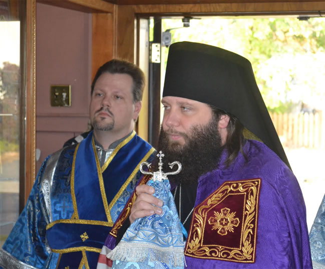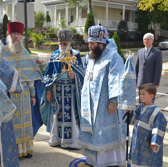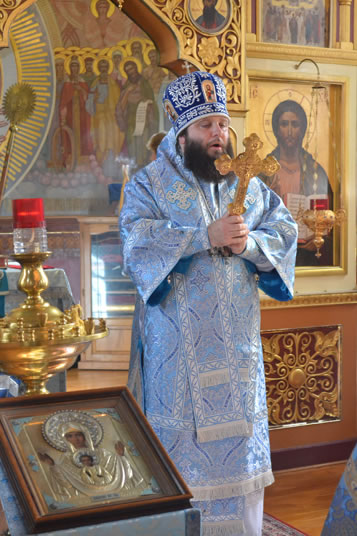 With the blessing of Metropolitan Hilarion, His Grace Bishop Nicholas of Manhattan, Vice Secretary of the Synod of Bishops, granted the award to Fr George during the minor entrance of Divine Liturgy at Holy Virgin Protection Church on its feast day. The Kursk-Root Icon of the Mother of God "of the Sign" was present at the service.