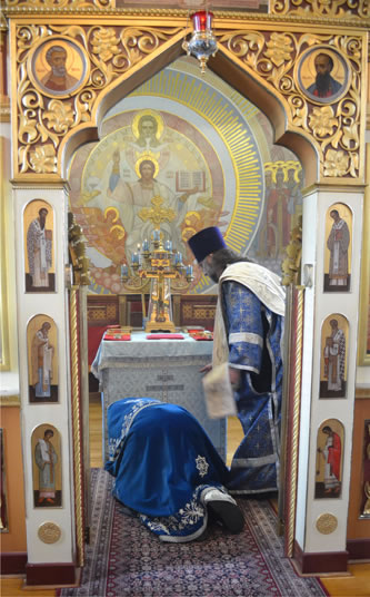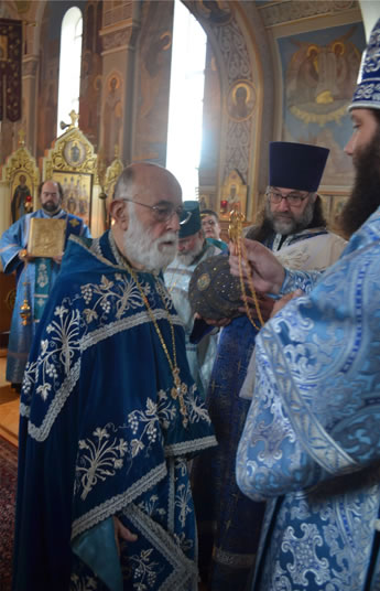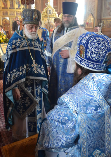 On Tuesday, October 7, 2014, the Synod of Bishops, during a regular meeting, presided over by His Eminence Metropolitan Hilarion of Eastern America and New York, First Hierarch of the Russian Orthodox Church Outside of Russia, heard and granted the intercession by Vladyka Hilarion on the awarding of the second cross to Mitred Protopriest George Larin to mark the 45th anniversary of his priestly service.