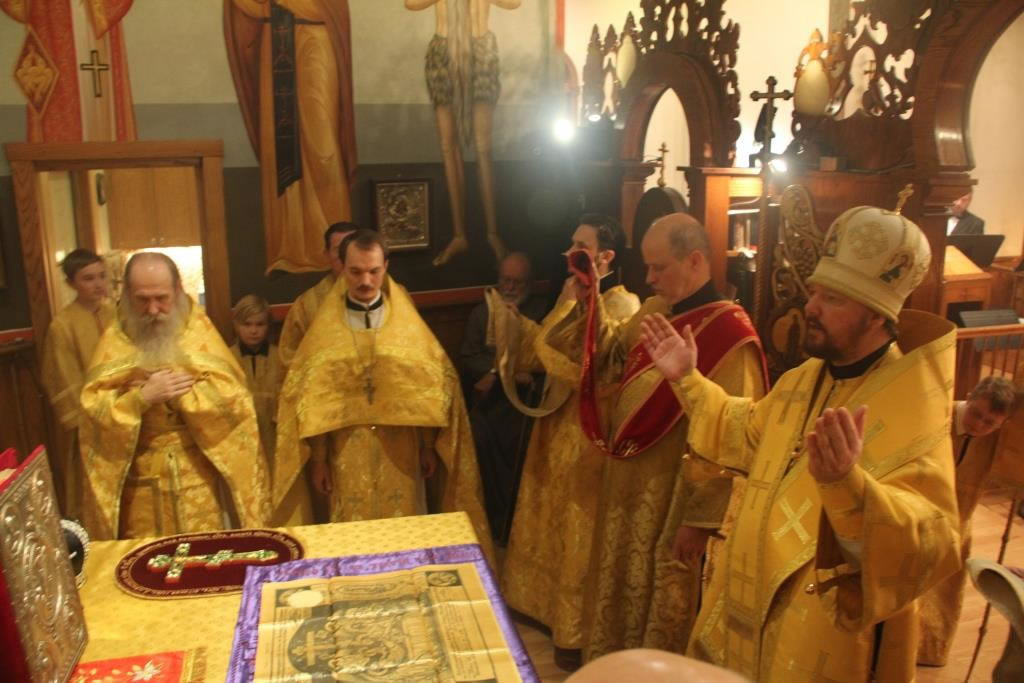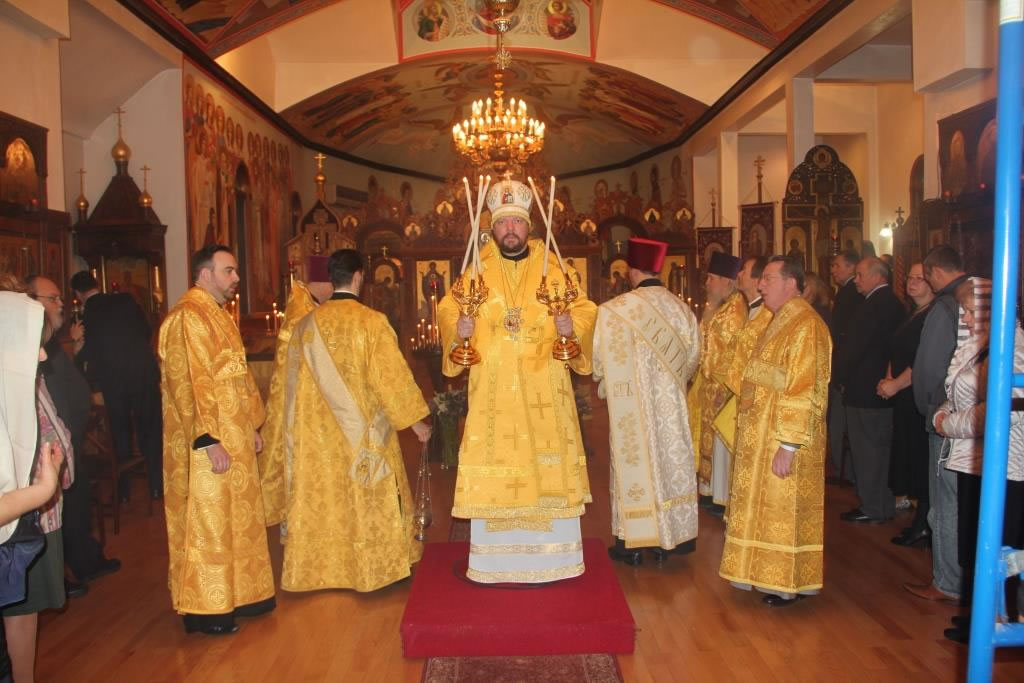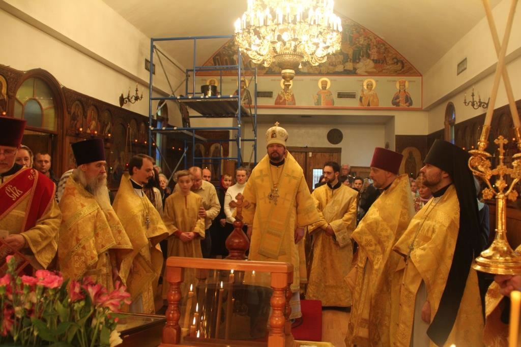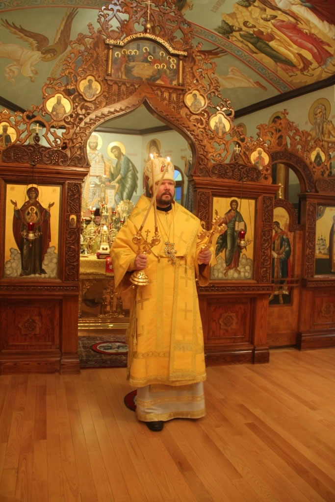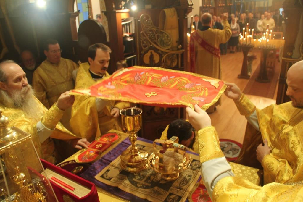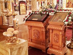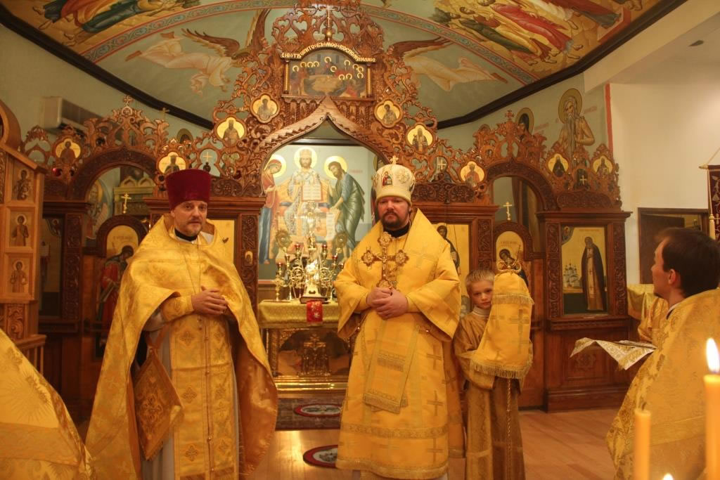 On Friday, October 31, and Saturday, November 1, 2014, the anniversary of the glorification of St John of Kronstadt, all-night vigil and Divine Liturgy were celebrated at the Synodal Cathedral of Our Lady “of the Sign” in New York, headed by Senior Priest Protopriest Andrei Sommer, along with Priest Igor Grytsyna, Hieromonk Tikhon (Gayfudinov), Protodeacon Nicolas Mokhoff and Deacn Nazary Fataliev. Deacon Dionisy Lvov and his matushka Nadezhda donated flowers to adorn the cathedral. The cassock of St John of Kronstadt from the Synod’s collection was made available for veneration during the services.
