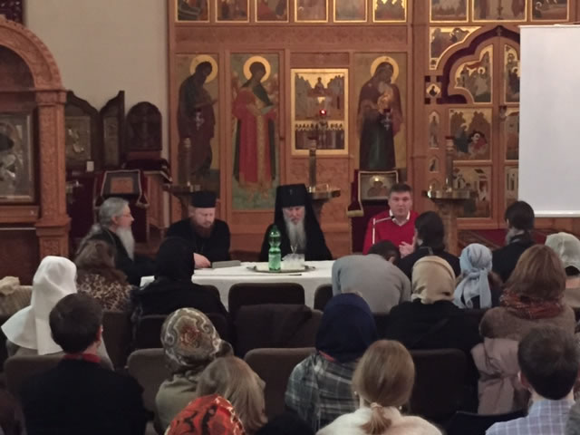 The subsequent Orthodox Seminar opened with a greeting by Archbishop Mark. Priest Alexei Limmer read a speech on St Sergius of Radonezh, the 700th anniversary of whose birth the Russian Church celebrated this year. That afternoon, Professor AM Velichko read a lecture entitled “Byzantium: The Grandmother of Christian Civilization.” Vladyka Iona then discussed youth ministry within the Ukrainian Orthodox Church. Ekaterina Yevsyukova, a member of the Synodal Department of Youth Ministry of the Belarussion Orthodox Church then talked about their work. Other speeches followed on church-state relations and the history of the Russian Church.