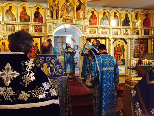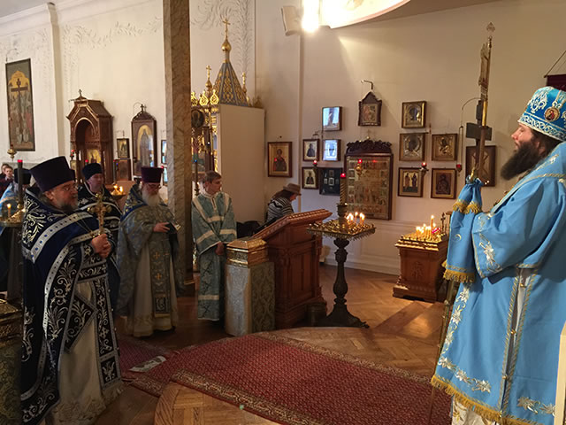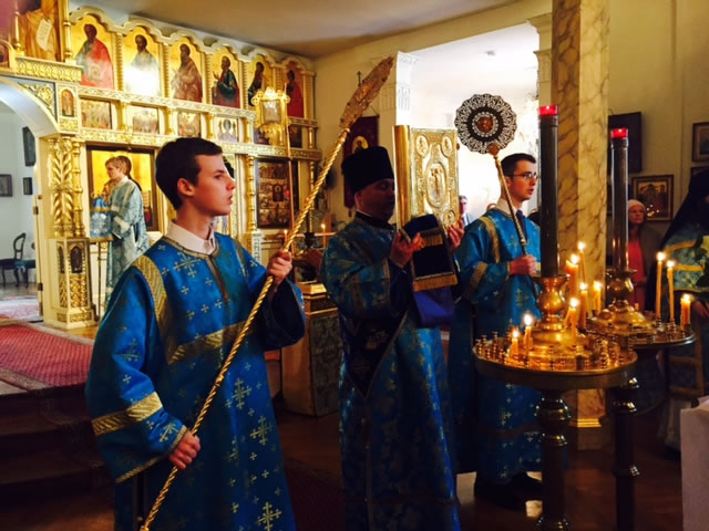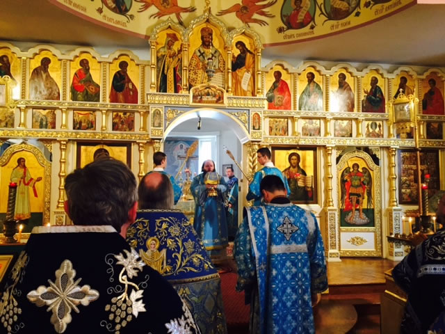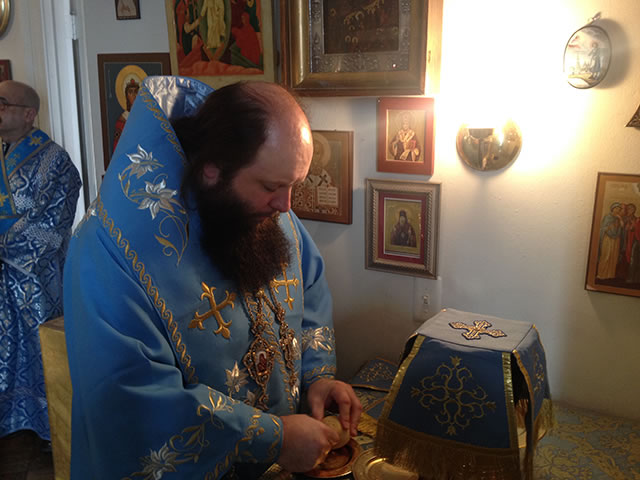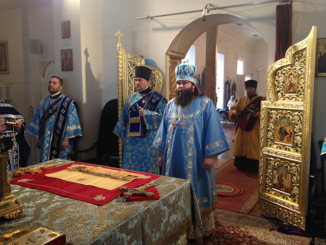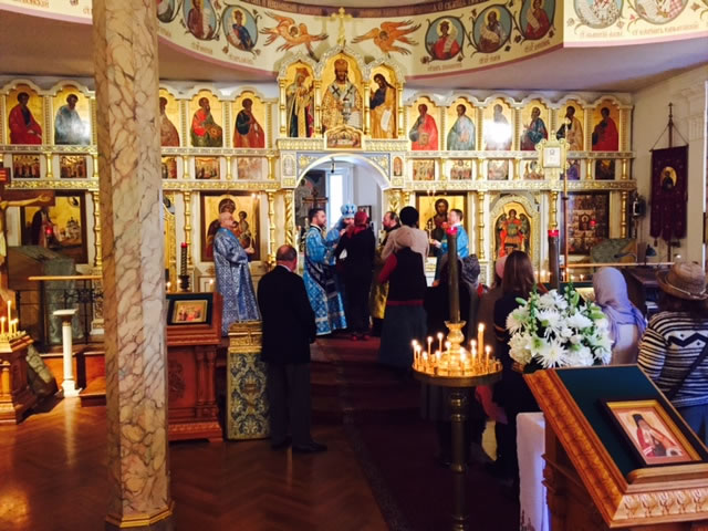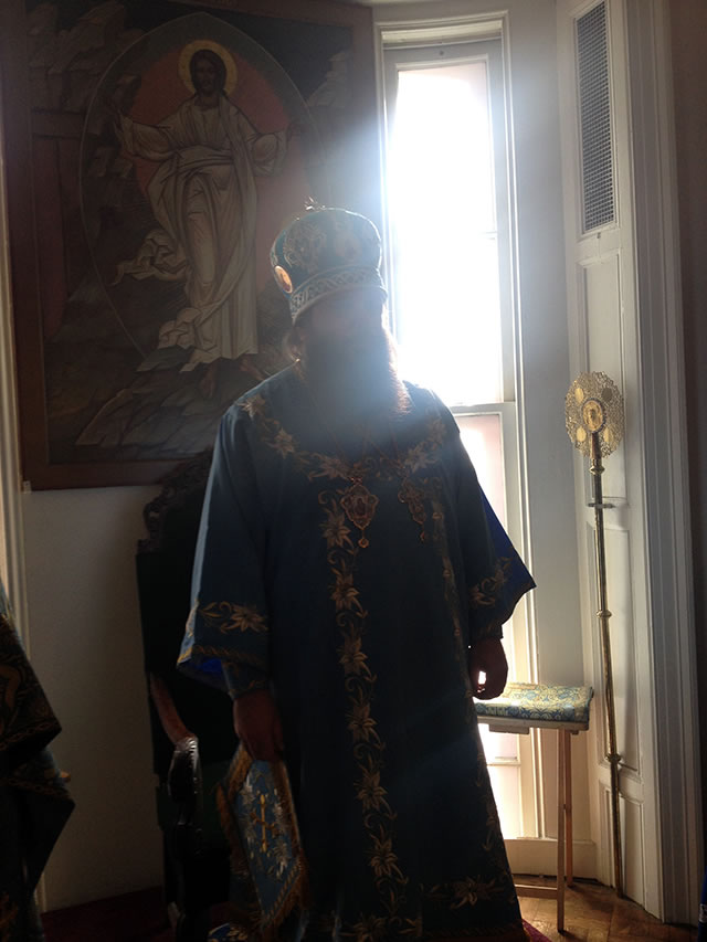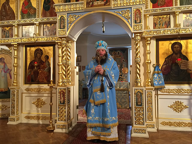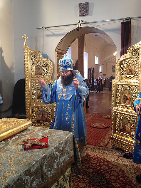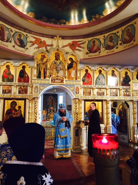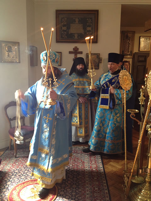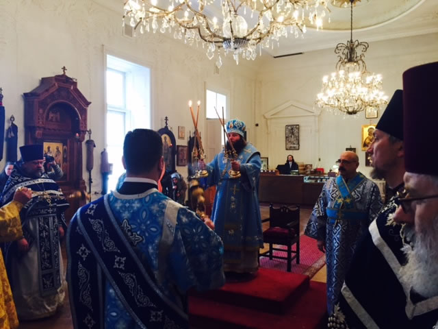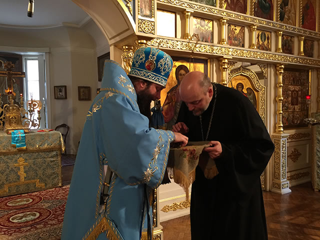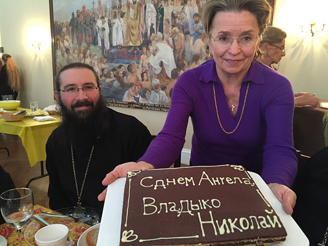On Monday, February 16, 2015, the feast day of St Nicholas of Japan, Equal-to-the-Apostles, His Grace Bishop Nicholas of Manhattan celebrated Divine Liturgy at the Synodal Cathedral of Our Lady “of the Sign” in New York. Joining him were Senior Priest of the cathedral, Protopriest Andrei Sommer, Vice President of the Synodal Youth Department, and a host of clergymen; the Cathedral Choir sang under the direction of Peter Fekula. At the end of the services, Fr Andrei expressed his heartfelt greetings to His Grace and gave him a relic: an ancient prayer rope from Mt Athos that had once belonged to Archbishop Nikon (Rklitsky) of blessed memory, which were given by him during the second visit of the Kursk-Root Icon of the Mother of God "of the Sign" to Australia in the 1960’s to Protopriest Rostislav Gan, who had been ordained to the priesthood on this day in 1936 in Kazan Mother of God Monastery in Harbin, China. The celebrations continued at a festive luncheon organized by the cathedral’s sisterhood, during which many congratulatory words were spoken in honor of Vladyka Nicholas.