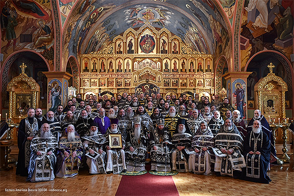 The gathered hierarchs, clergy and wives of the Eastern American Diocese of the Russian Orthodox Church Abroad