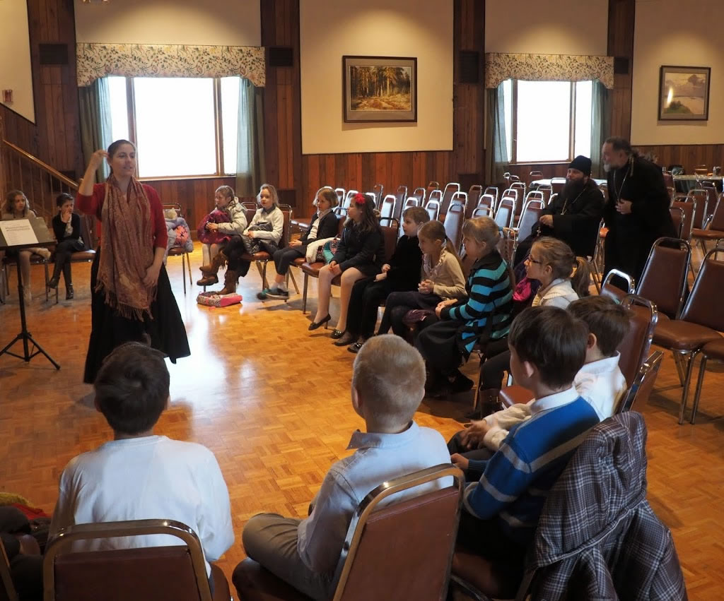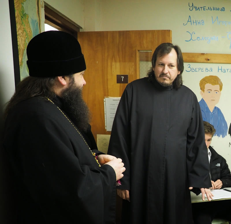Protodeacon Serge Arlievsky, Curriculum Director and teacher of the Law of God, gave Bishop Nicholas a tour of the school. His Grace then had a discussion with the elder students, telling them about living an Orthodox life, explaining what it means to be an Orthodox Christian in the modern world, calling upon the young people to stay loyal to the Church. Vladyka Nicholas then attended a singing lesson with the middle-level students under the experienced guidance of Irina Serdseva.