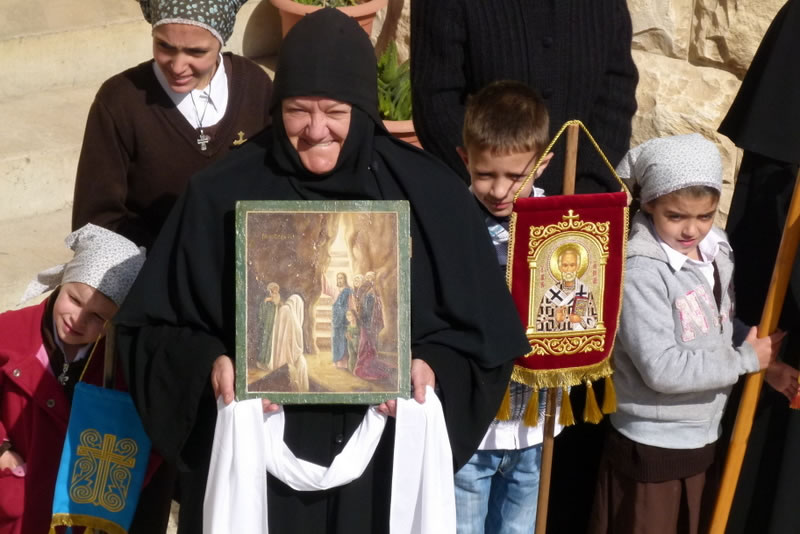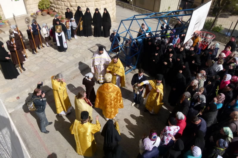 On April 6, 2015, Lazarus Saturday, Archimandrite Roman (Krassovsky), Chief of the Russian Ecclesiastical Mission in Jerusalem of the Russian Orthodox Church Outside of Russia, headed divine services at the Orthodox School of Bethany, where a chapel stands at the site of the Savior's meeting with Lazarus and his sisters, which is illustrated by ancient mosaics.