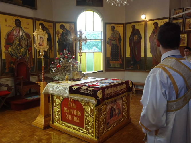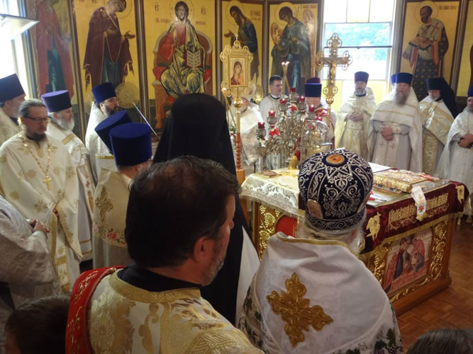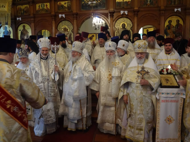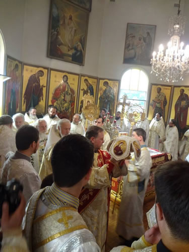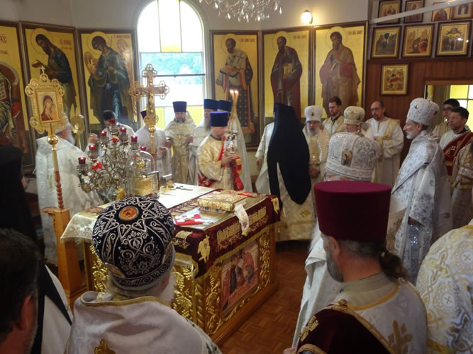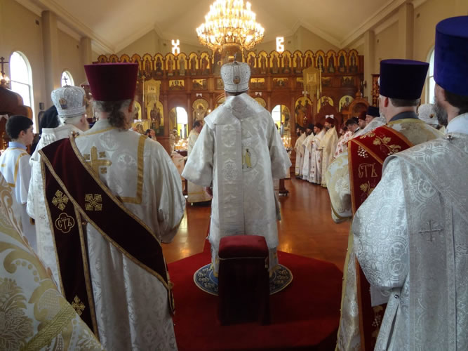 On Bright Friday, April 17, 2015, SS Peter and Paul Cathedral in Strathfield, Australia, hosted Divine Liturgy headed by His Eminence Metropolitan Hilarion of Eastern America and New York, First Hierarch of the Russian Orthodox Church Outside of Russia, who remained the Archbishop of Australia and New Zealand after his election as Primate in 2008. His Eminence was joined by local bishops of the Serbian Orthodox Church, His Grace Bishop Irenaeus, and His Grace Bishop George of Canberra, as well as clergyman from throughout the Diocese of Australia and New Zealand and representatives of local Orthodox churches who serve in Australia.