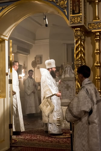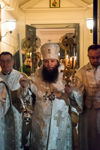 Later that day, His Grace performed the Paschal vespers, then welcomed all to his residence for continuing celebration of the Lord's Pascha.