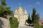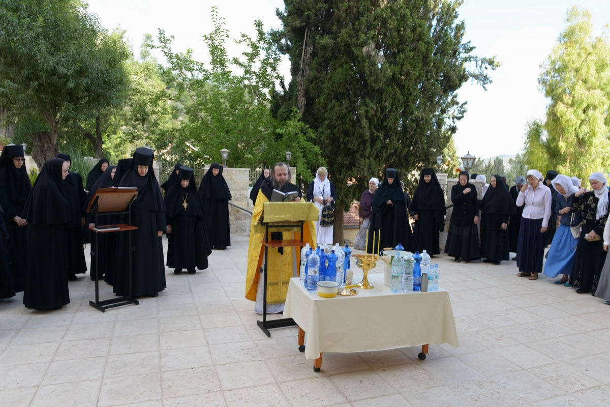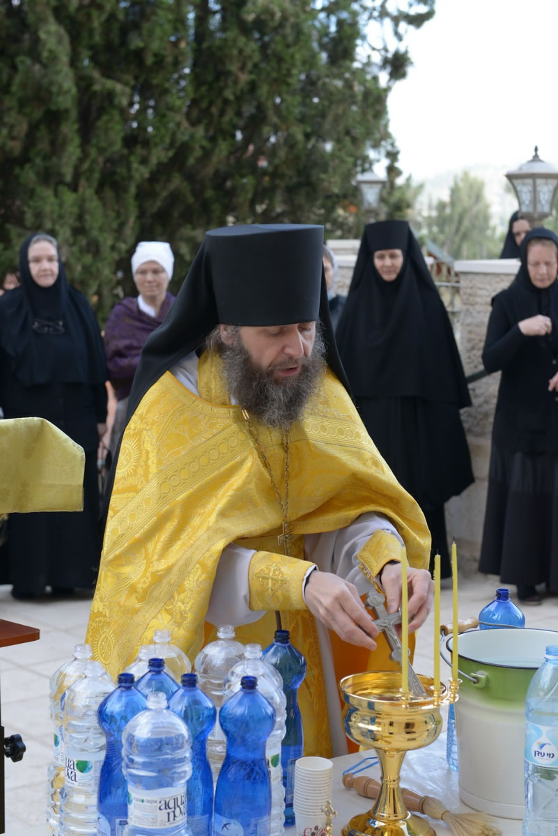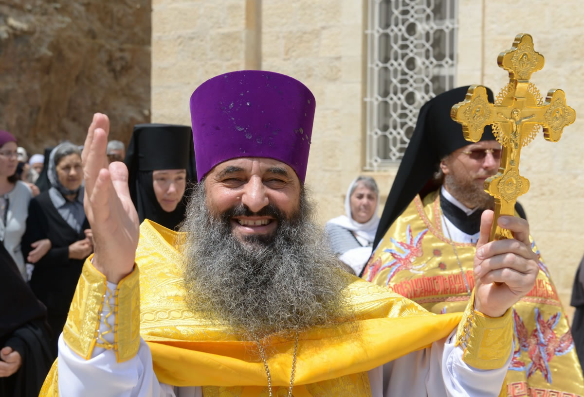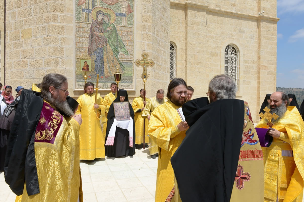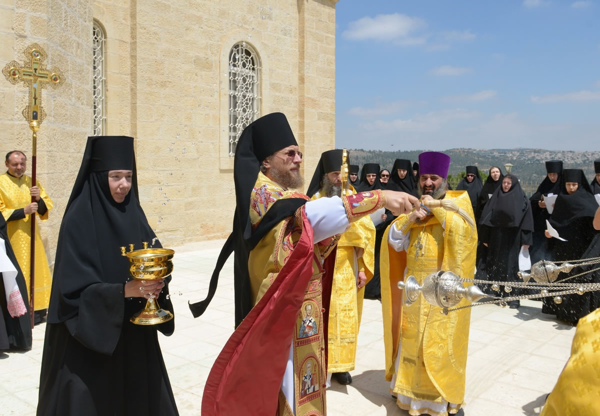 The cathedral of Gorny Convent in Jerusalem is dedicated to All Russian Saints, so this day has special meaning there. All-night vigil on the eve, June 13, and Divine Liturgy on Sunday, June 14, 2015, was led by the Acting Chief of the Mission of the Moscow Patriarchate, Abbot Feofan. During Liturgy he was joined by the Chief of Russian Ecclesiastical Mission in Jerusalem of the Russian Orthodox Church Outside of Russia, Archimandrite Roman (Krassovsky), as well as clergymen of the Mission and pilgrims in clerical rank.