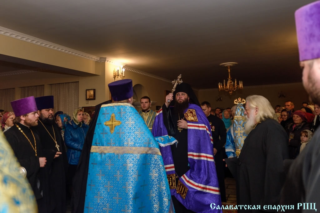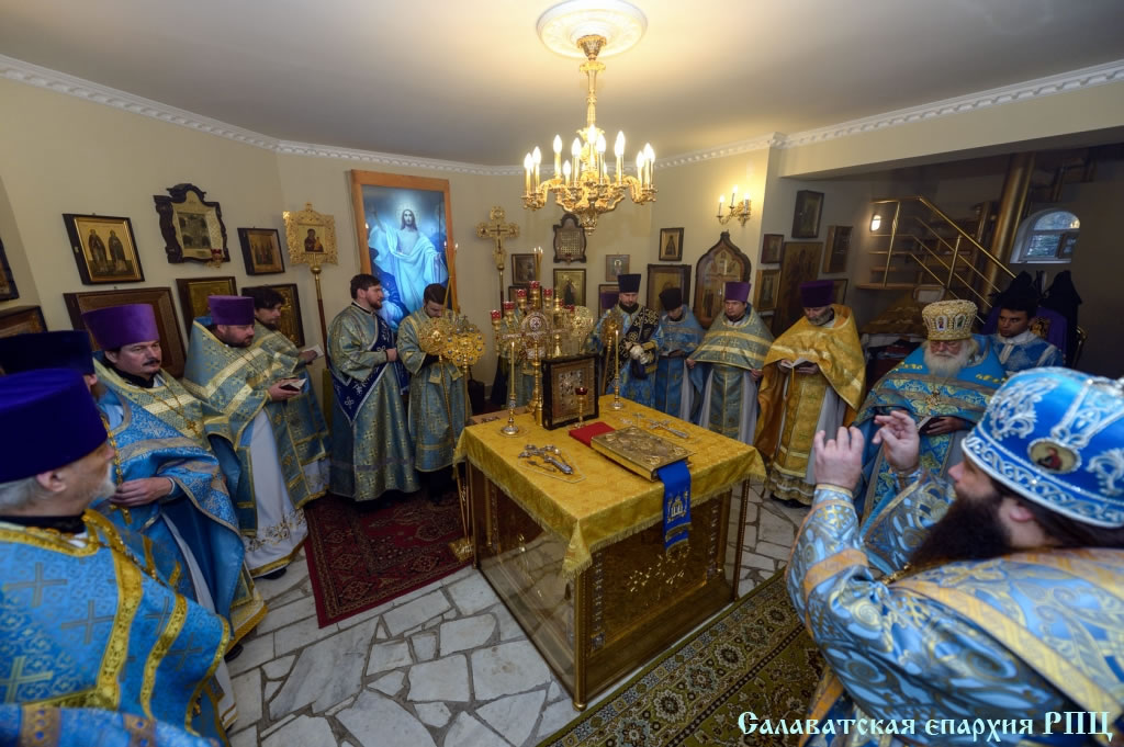 On Tuesday, October 20, 2015, His Grace Bishop Nikolai of Salavat and Kumertausk and His Grace Bishop Nicholas of Manhattan jointly celebrated Divine Liturgy at Uspensky Cathedral in Salavat, Russia. A moleben was then served before the miracle-working Kursk-Root Icon of the Mother of God "of the Sign.”
