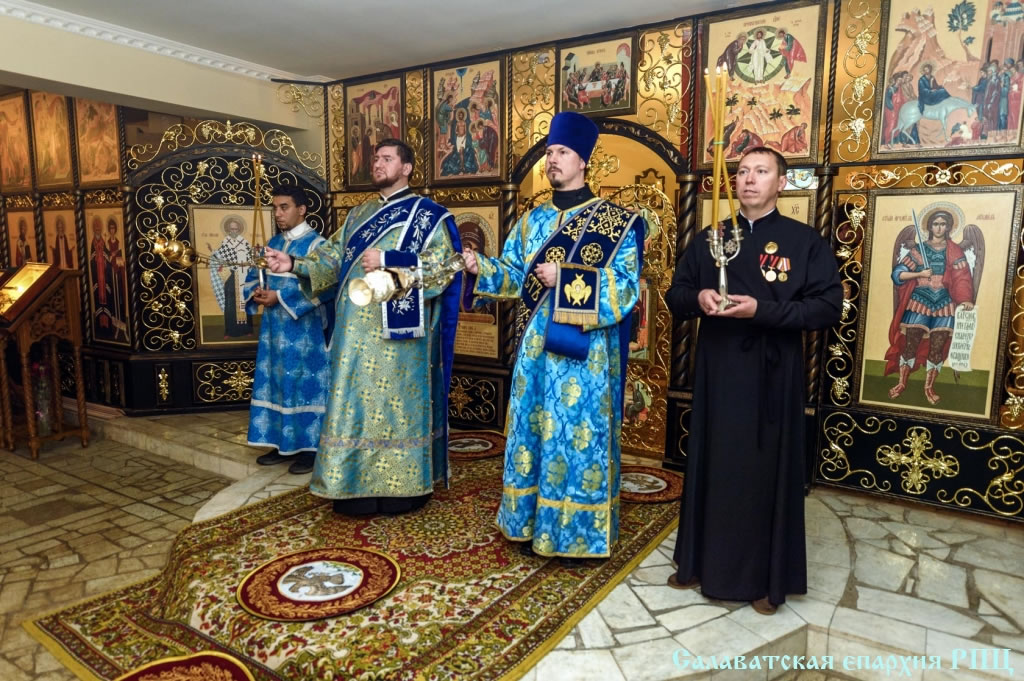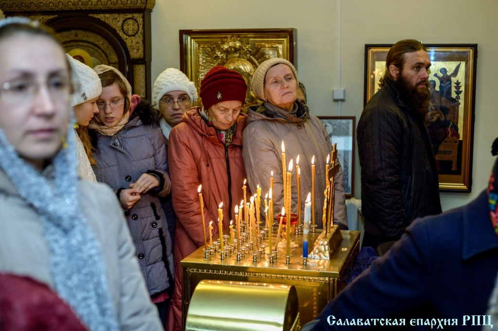 That day, a pilgrimage led by the Kursk-Root Icon of the Mother of God was organized by the Sobriety Society to St John the Forerunner Church in Kumertau. The church’s clergymen, led by the local Dean, Protopriest Sergy Vetrov, performed a moleben and akathist before the icon of the Mother of God.