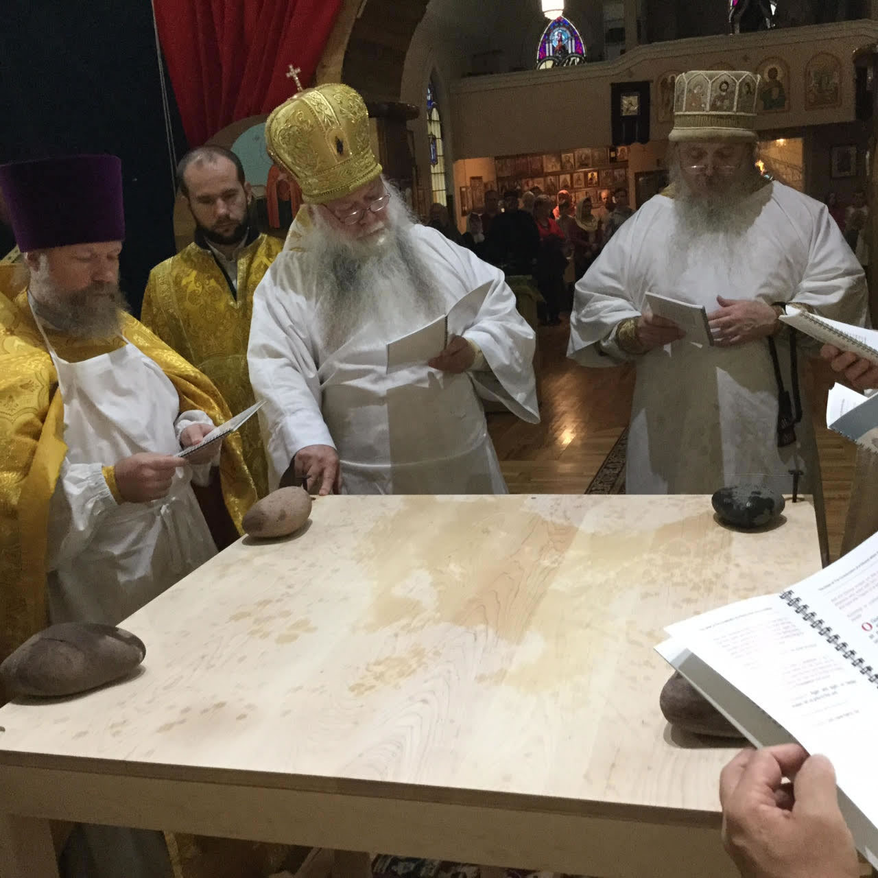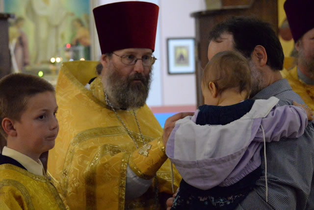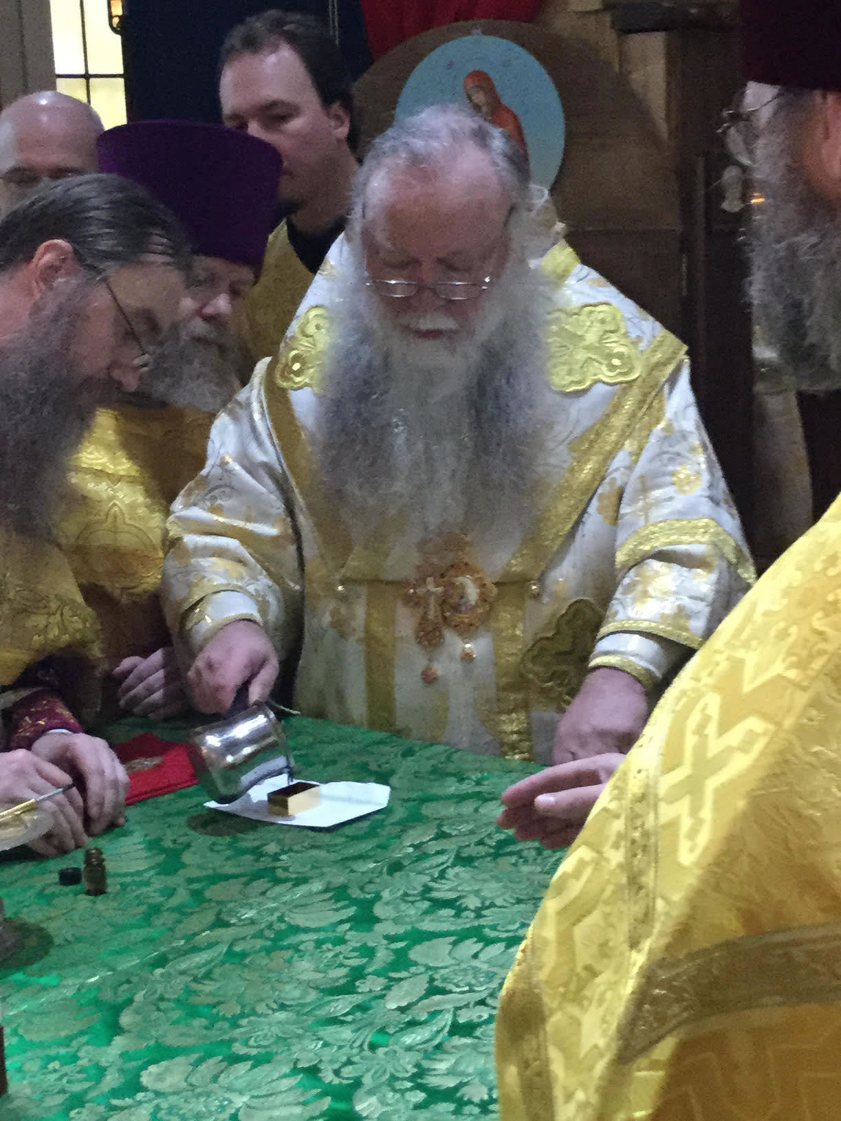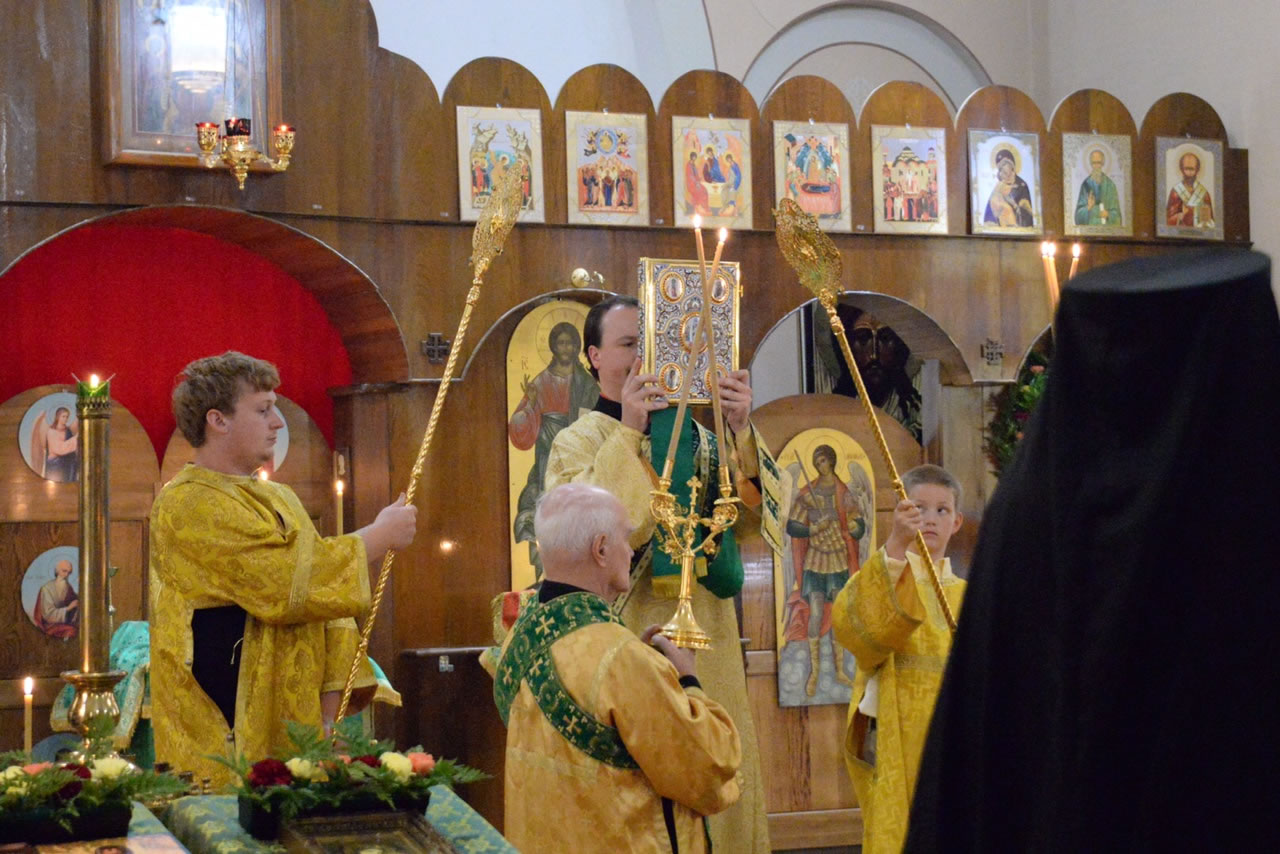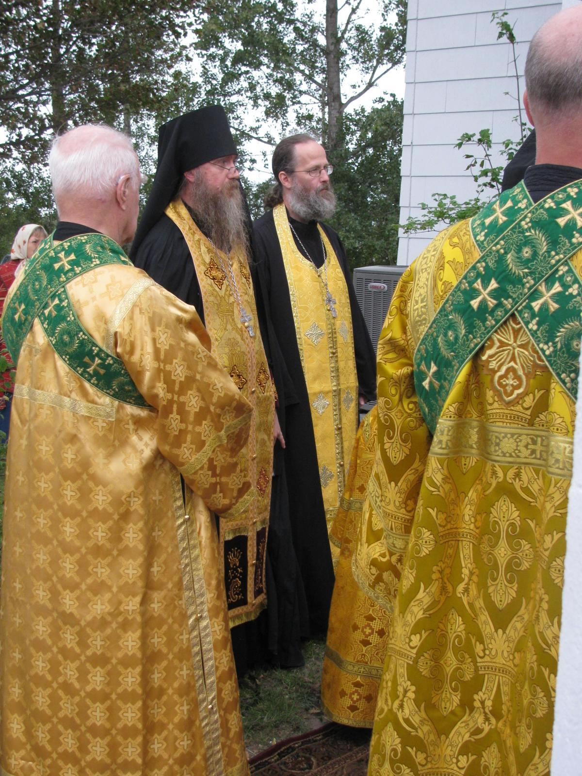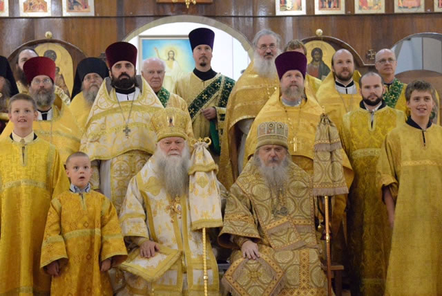 His Grace Bishop Peter presided over the Great Consecration itself, while His Grace Bishop John (Bishop of Caracas and South America) led vigil the evening before and the Divine Liturgy on the day of the consecration. Visiting clergy helped and prayed during the services: Archpriest Gregory Joyce (Rector of St Vladimir Church, Ann Arbor, MI, and Dean of the Michigan Deanery); Archpriest Vasyl Kuzmych (Rector of Holy Trinity Church, Milwaukee, WI); Archpriest John Whiteford (Rector of St Jonah of Manchuria Church, Houston, TX); Priest Daniel Marshall (Rector of St George, Cincinnati, OH); Priest Antony Alekseyenko (Rector of St Panteleimon Church, Minneapolis, MN); Hieromonk Timothy Tadros (Rector of St. George Orthodox Church, Michigan City, IN); Protodeacon Alexander Kichakov (cleric of Holy Virgin Protection Cathedral, Des Plaines, IL) and Deacon Alexander Petrovsky (Cleric St. George Orthodox Church, Cincinnati, OH).