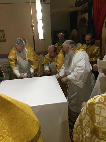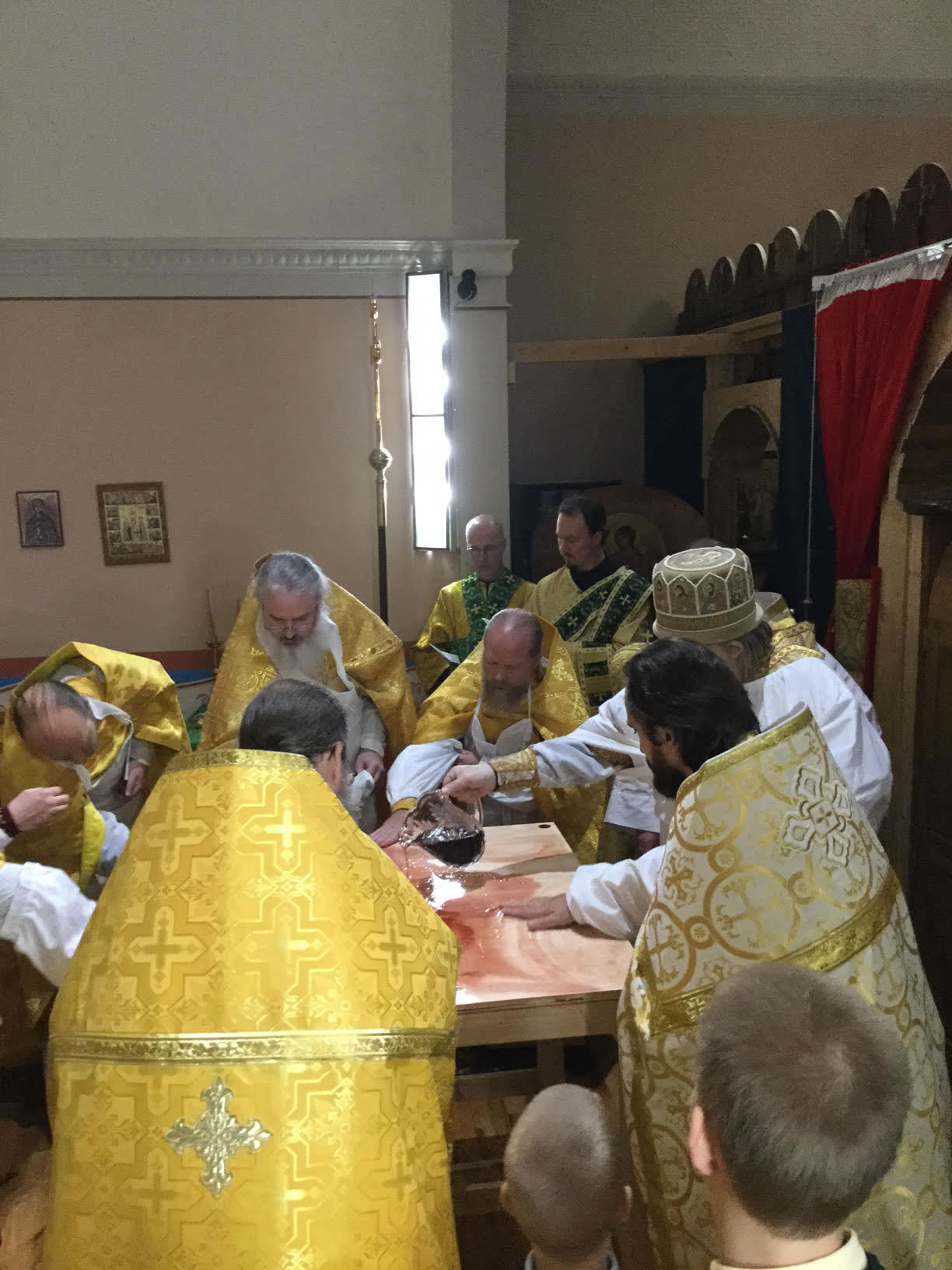 A Great Consecration is unfortunately a rare event in the Russian Church Abroad. But to the clergy and faithful alike these services were a powerful reminder that we should strive to establish our footprint in this country, with un-removable temples that are dedicated to God for eternity. Even days after the consecration, we can literally see the grace flowing from the walls, in the form of chrism that penetrates the walls, and smell the sweet fragrance of the Holy Spirit, that infused the new Holy Table and antimension from the Chrism and rose water.