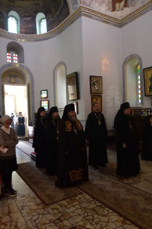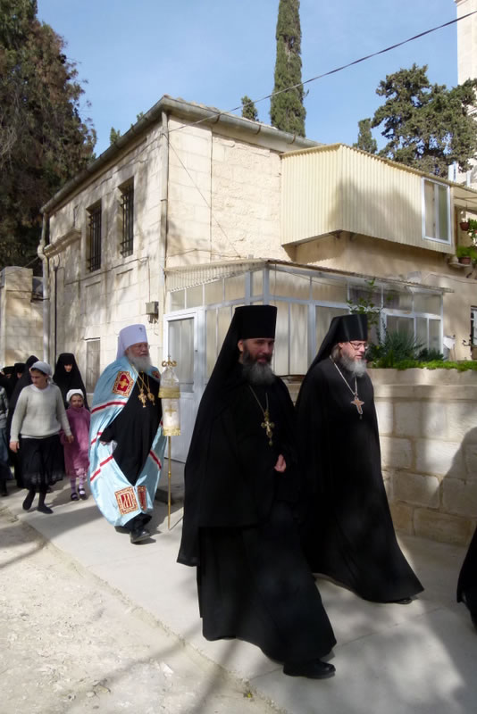 On Sunday, November 15, 2015, His Eminence Metropolitan Hilarion of Eastern America and New York, First Hierarch of the Russian Orthodox Church Outside of Russia, celebrated Divine Liturgy at Ascension Convent on the Mt of Olives in Jerusalem, preceded by all-night vigil the evening before. He was joined in the services by His Eminence Archbishop Michael of Geneva and Western Europe, Archimandrite Roman (Krassovsky), Chief of the Russian Ecclesiastical Mission in Jerusalem of the Russian Church Abroad, the REM's and visiting clergymen.