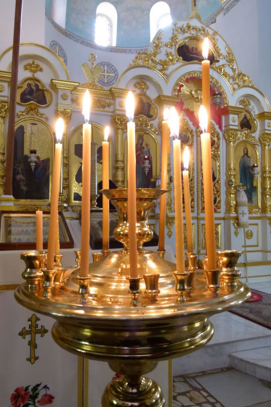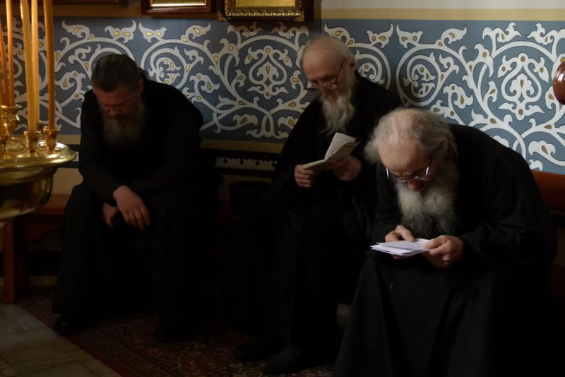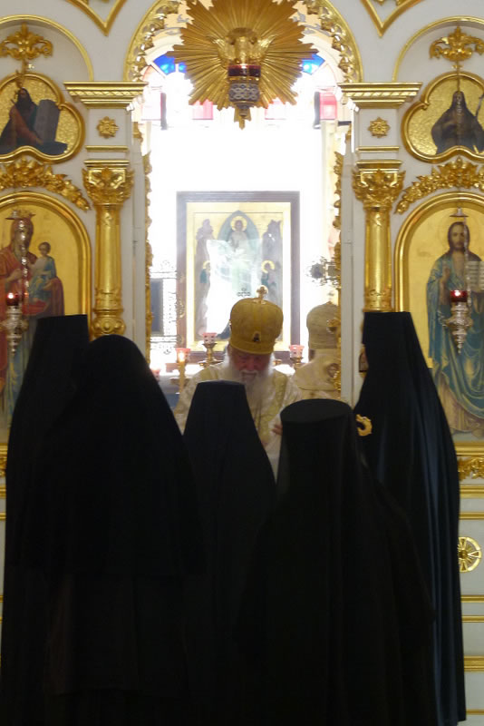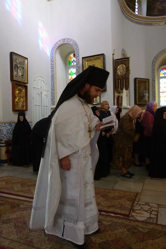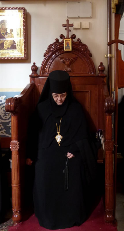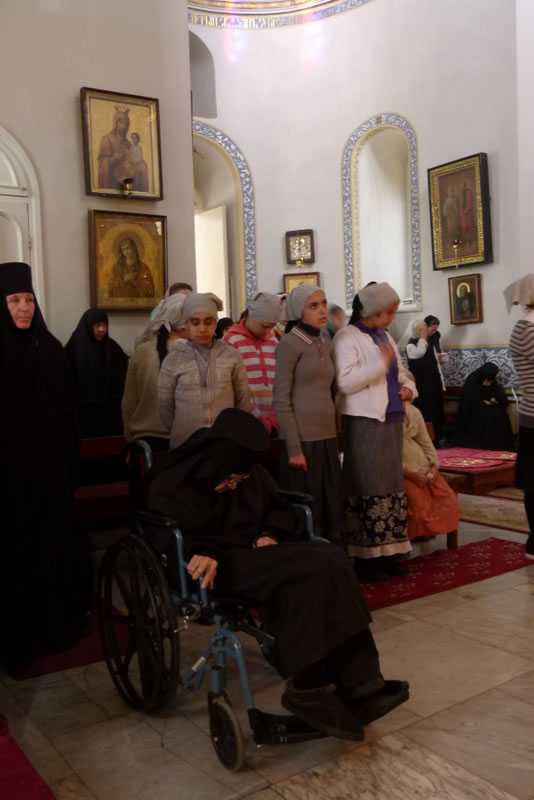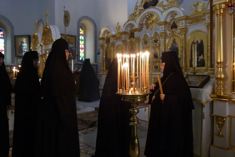Abbess Moissea, head of the convent, prayed during the services along with her nuns.
