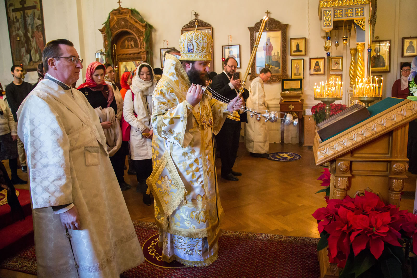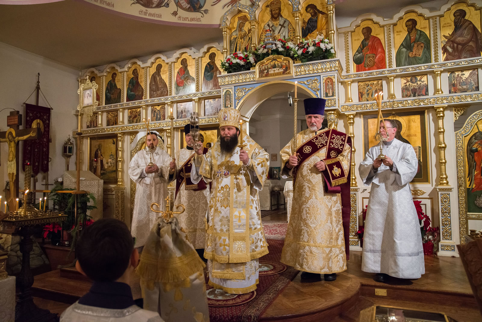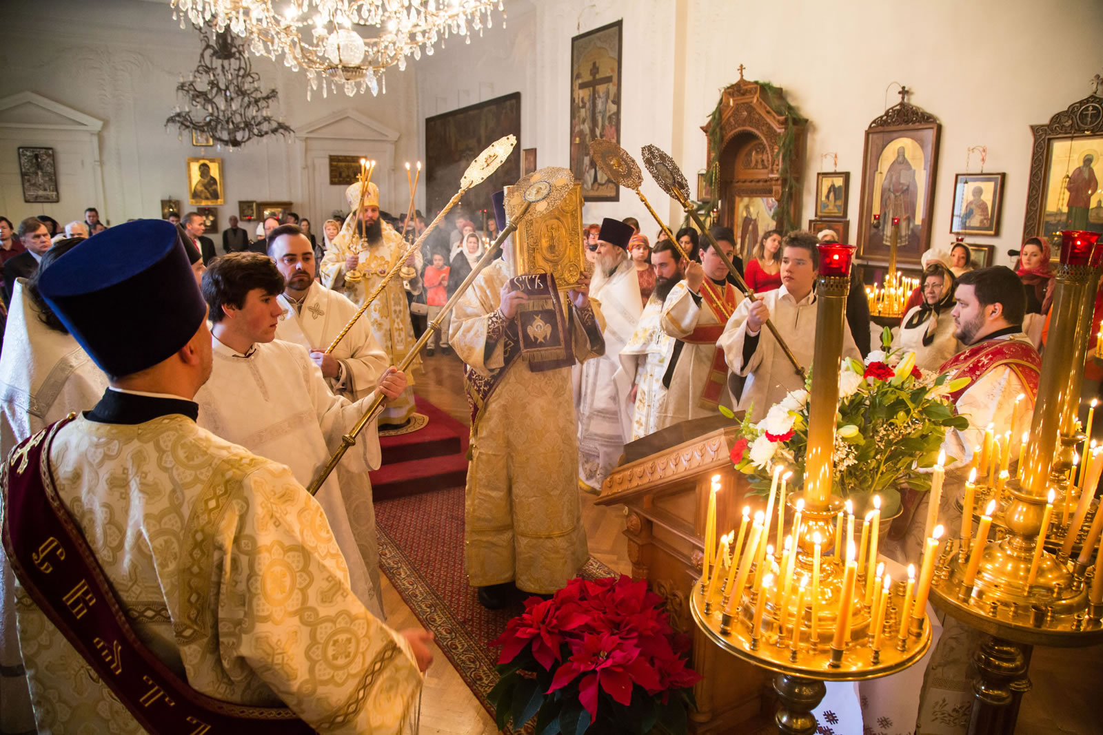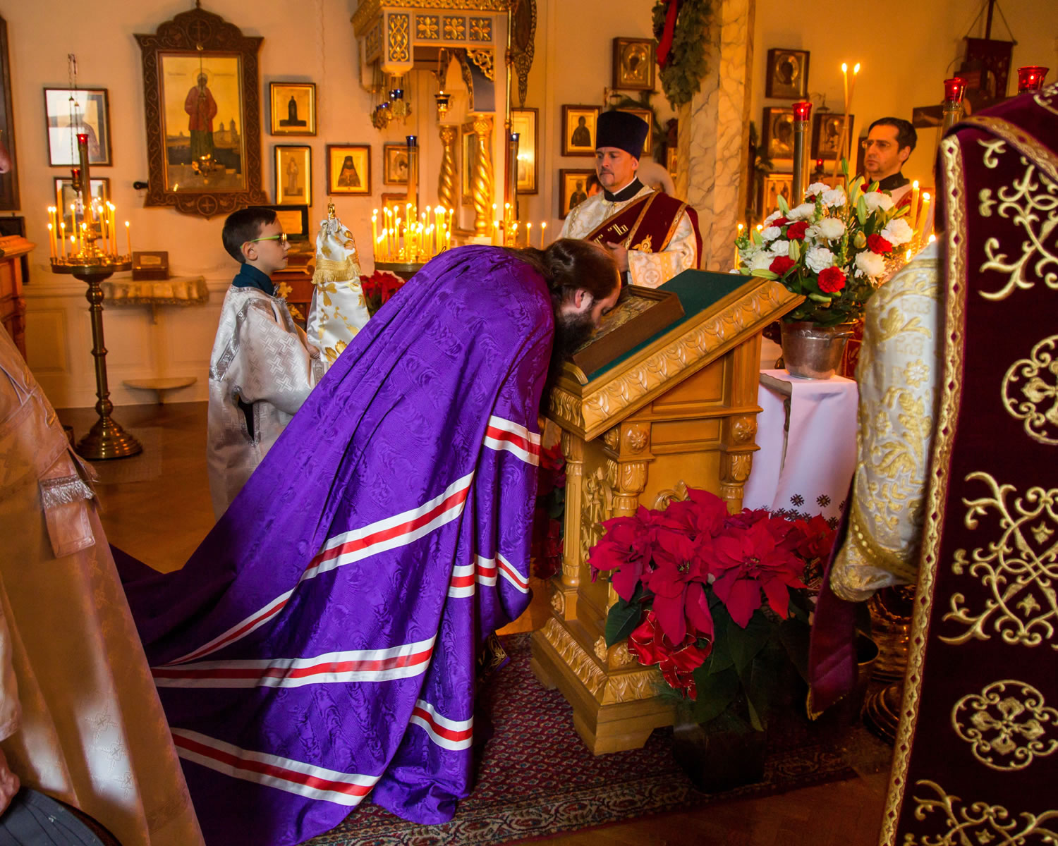 On January 6-7, 2016, the feast day of the Nativity of Christ, Divine Liturgy at the Synodal Cathedral of Our Lady “of the Sign” in New York City was headed by His Grace Bishop Nicholas of Manhattan, Deputy Secretary of the Synod of Bishops of the Russian Orthodox Church Outside of Russia, along with the cathedral clergymen. The Cathedral Choir sang under the direction of Peter Fekula, and a large gathering of worshipers was in attendance. The Kursk-Root Icon of the Mother of God "of the Sign” was present at all the services.
