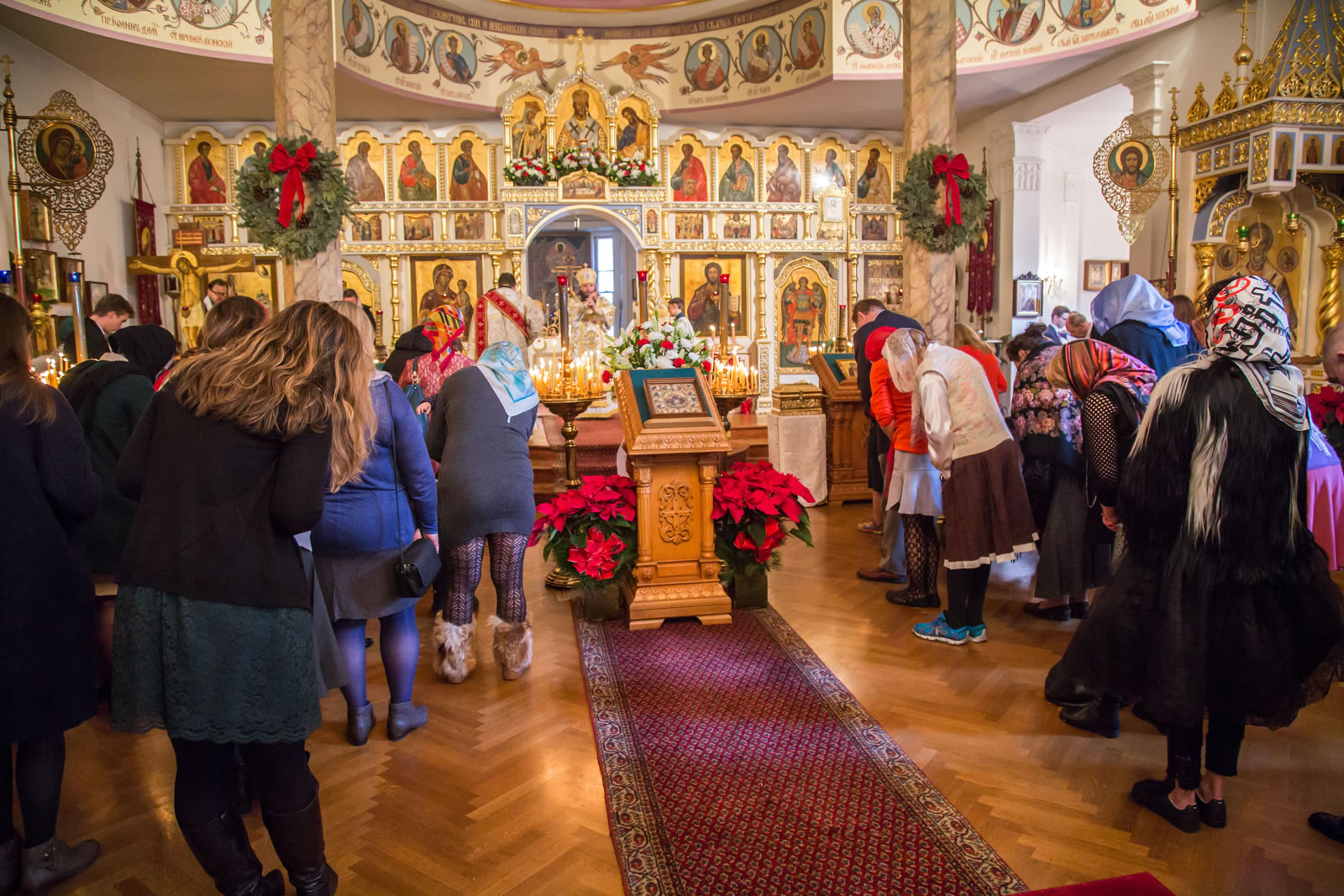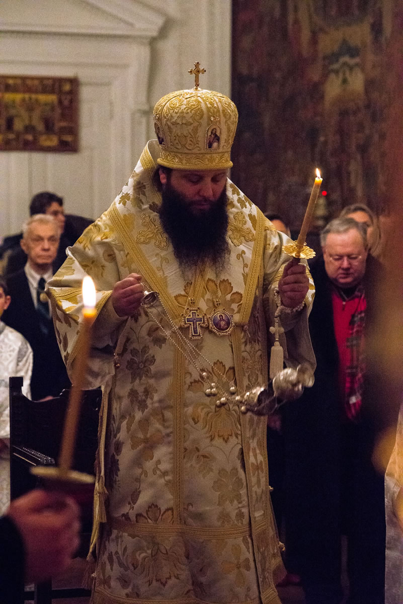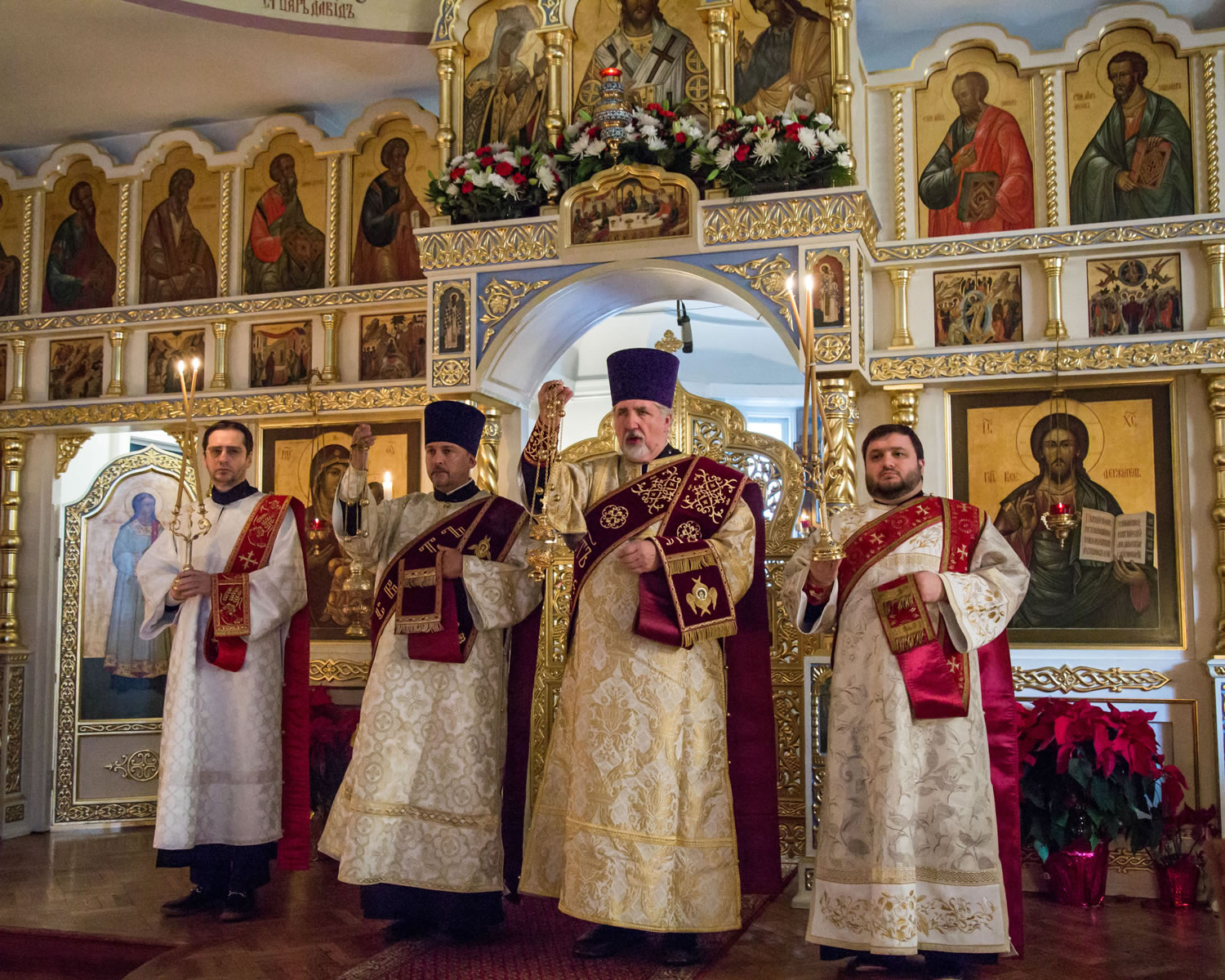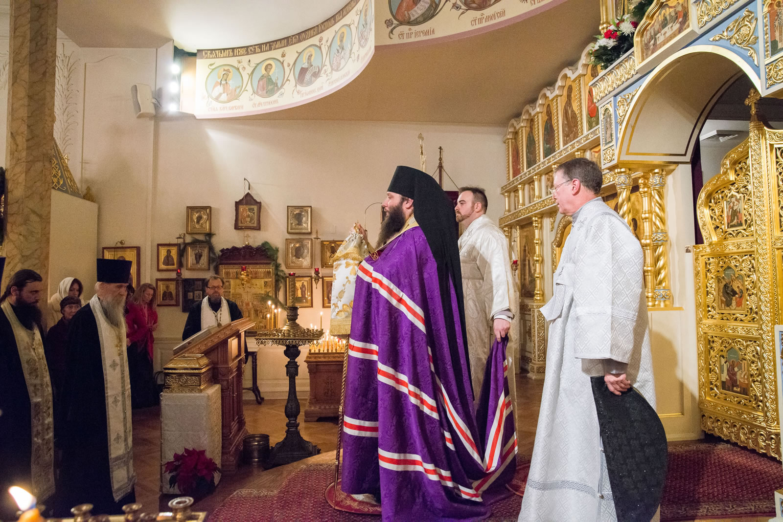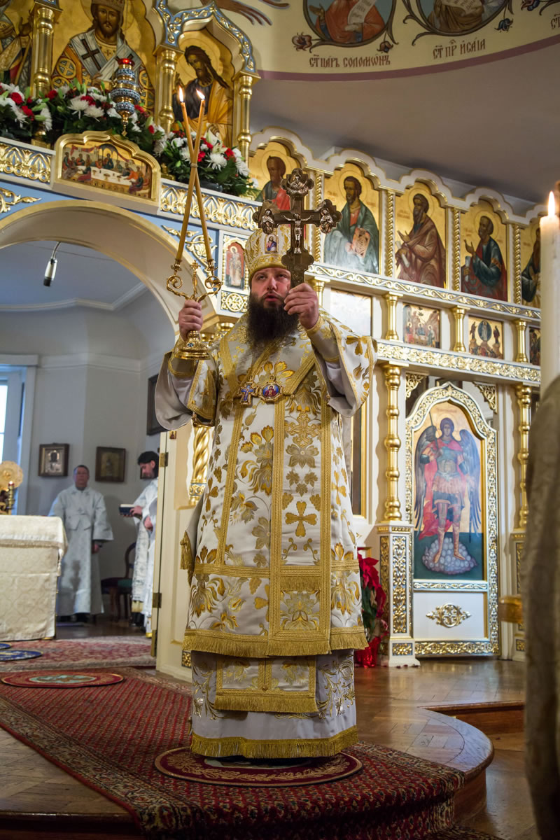 On January 6-7, 2016, the feast day of the Nativity of Christ, Divine Liturgy at the Synodal Cathedral of Our Lady “of the Sign” in New York City was headed by His Grace Bishop Nicholas of Manhattan, Deputy Secretary of the Synod of Bishops of the Russian Orthodox Church Outside of Russia, along with the cathedral clergymen. The Cathedral Choir sang under the direction of Peter Fekula, and a large gathering of worshipers was in attendance. The Kursk-Root Icon of the Mother of God "of the Sign” was present at all the services.