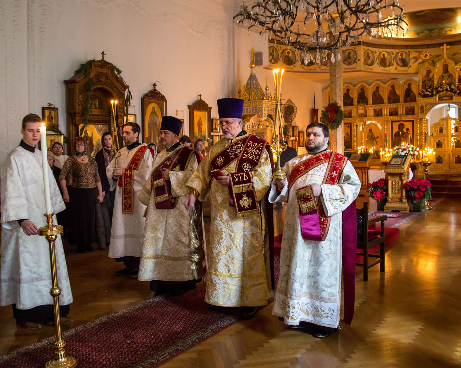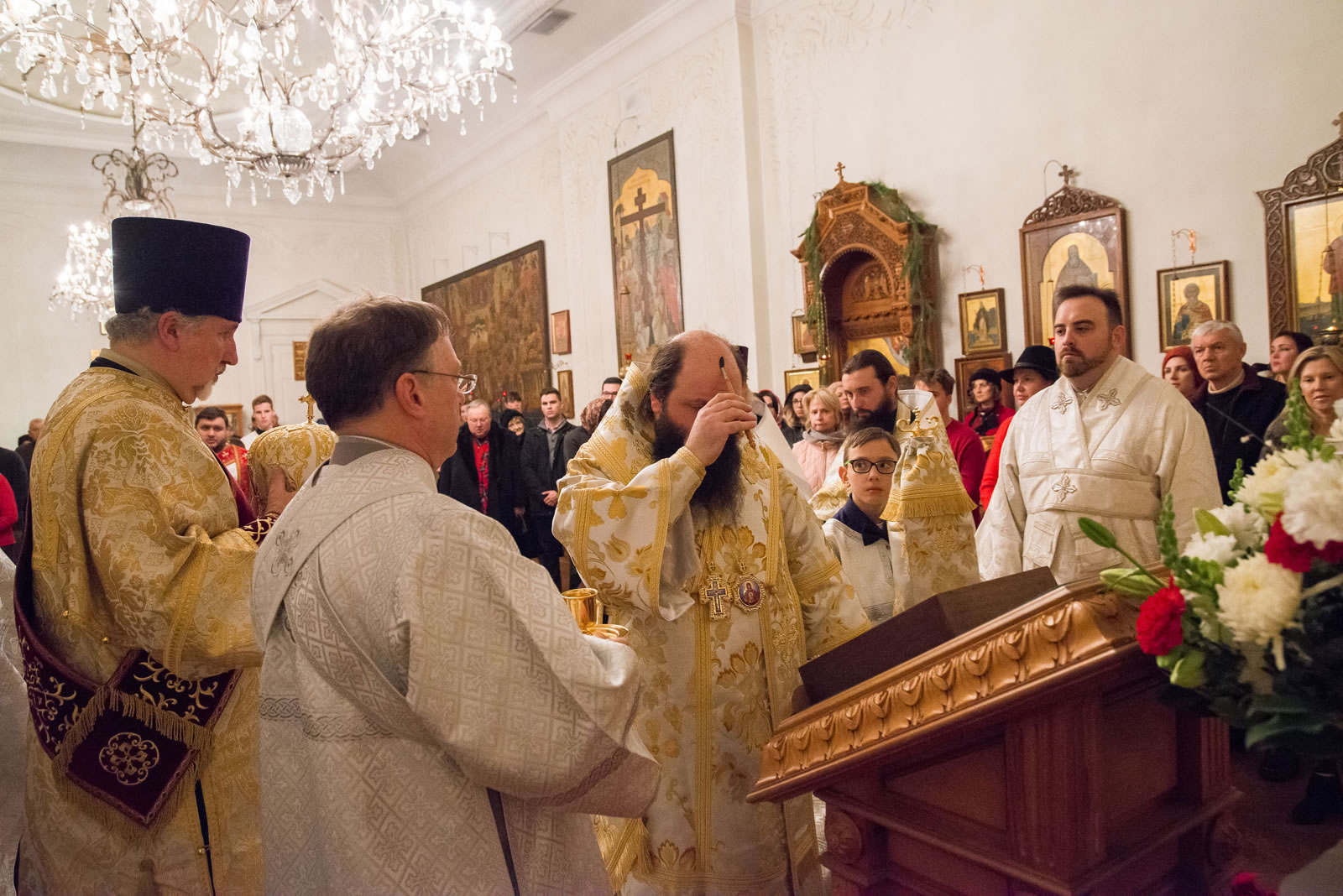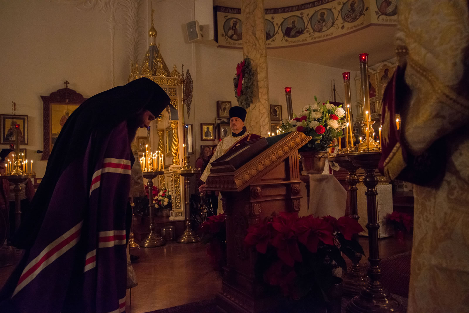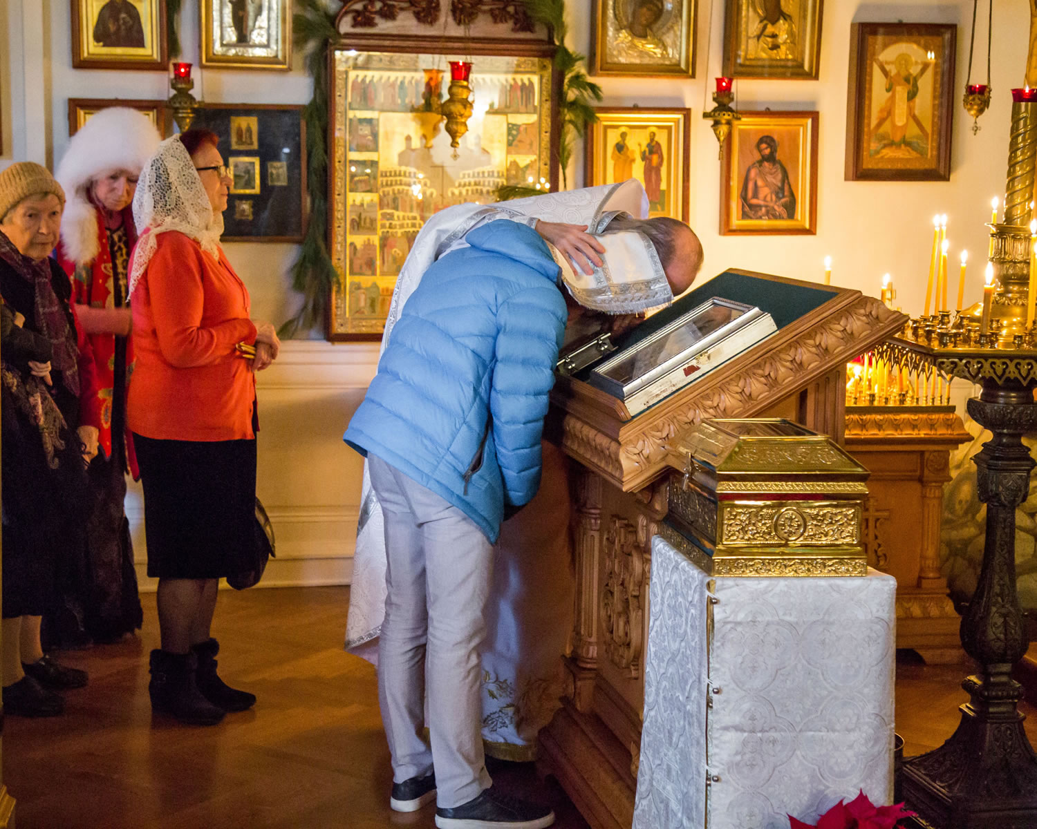 On January 6-7, 2016, the feast day of the Nativity of Christ, Divine Liturgy at the Synodal Cathedral of Our Lady “of the Sign” in New York City was headed by His Grace Bishop Nicholas of Manhattan, Deputy Secretary of the Synod of Bishops of the Russian Orthodox Church Outside of Russia, along with the cathedral clergymen. The Cathedral Choir sang under the direction of Peter Fekula, and a large gathering of worshipers was in attendance. The Kursk-Root Icon of the Mother of God "of the Sign” was present at all the services.