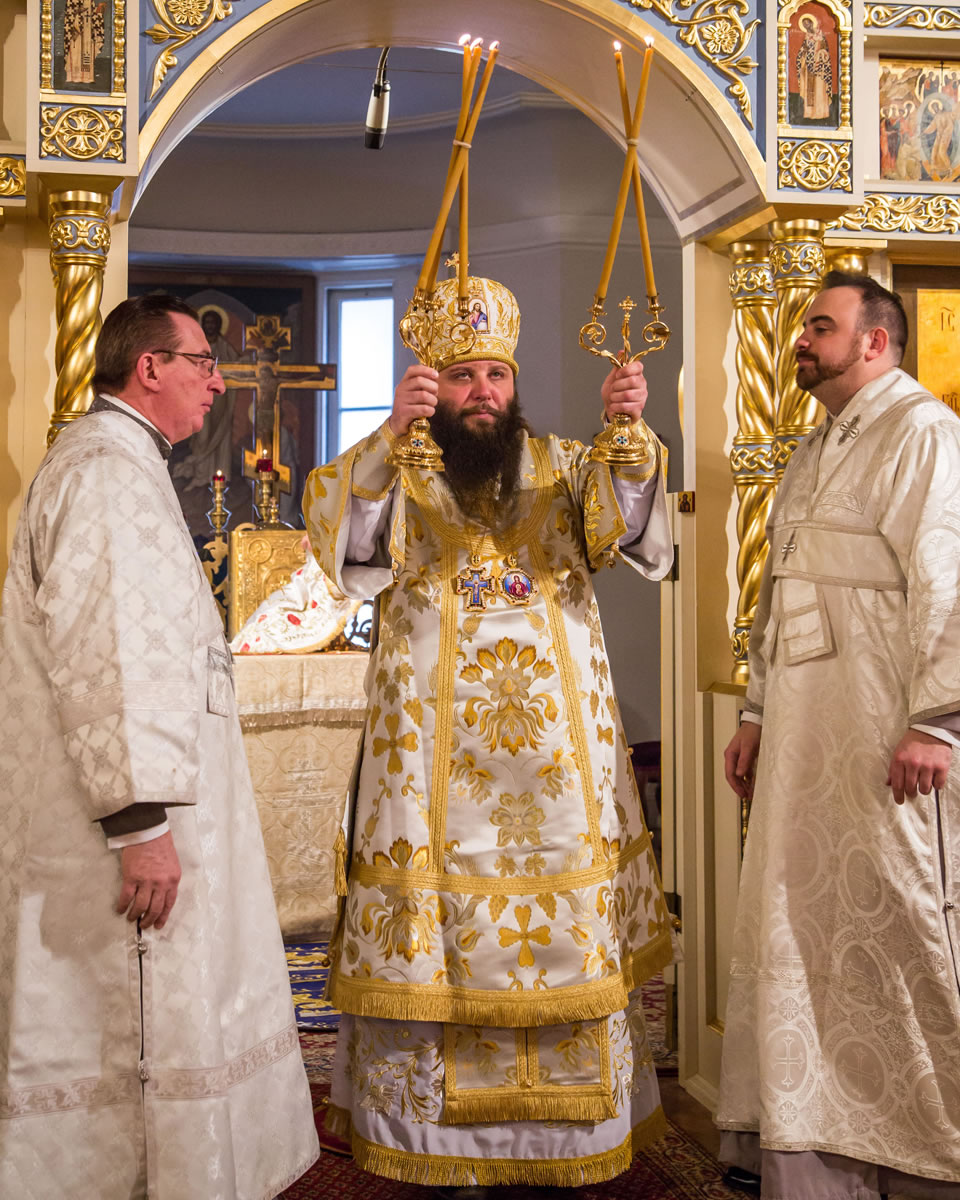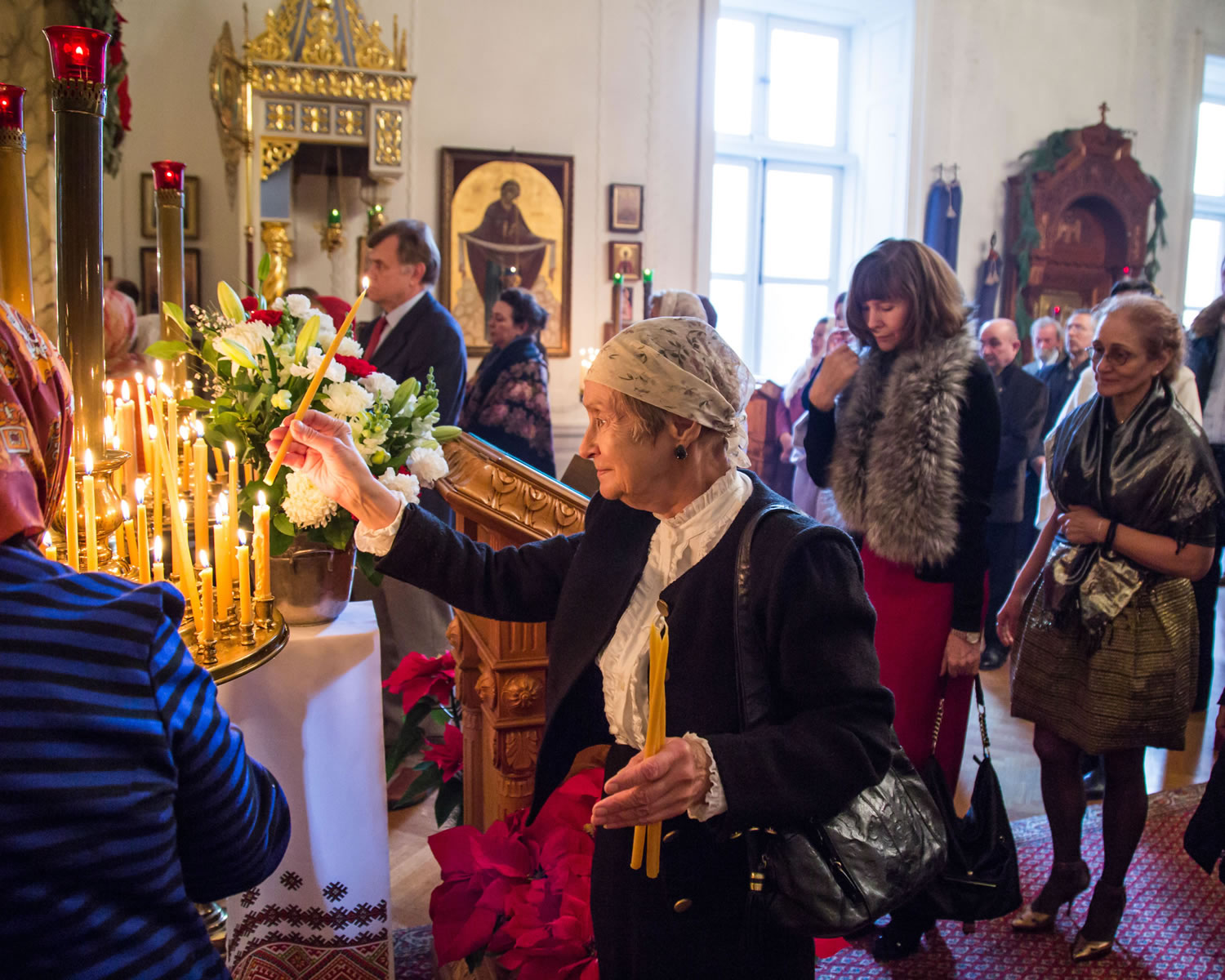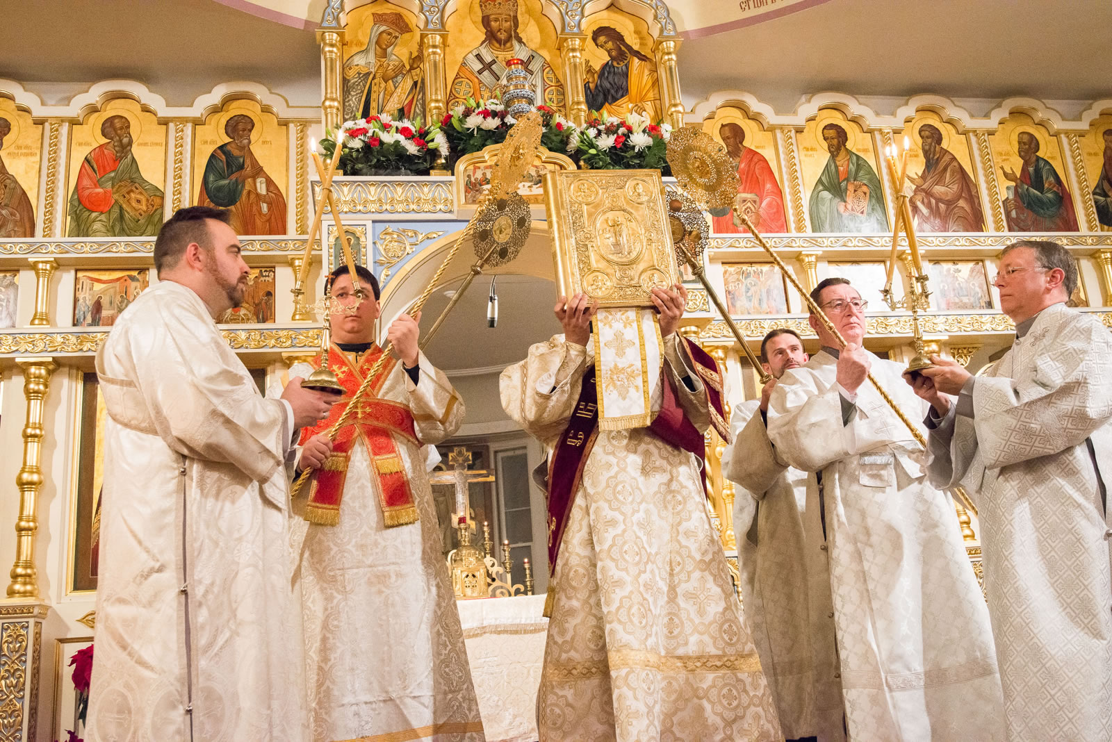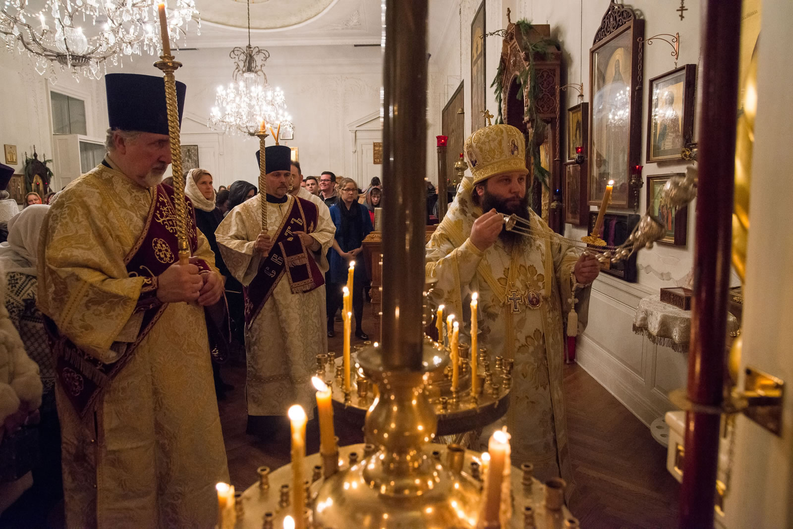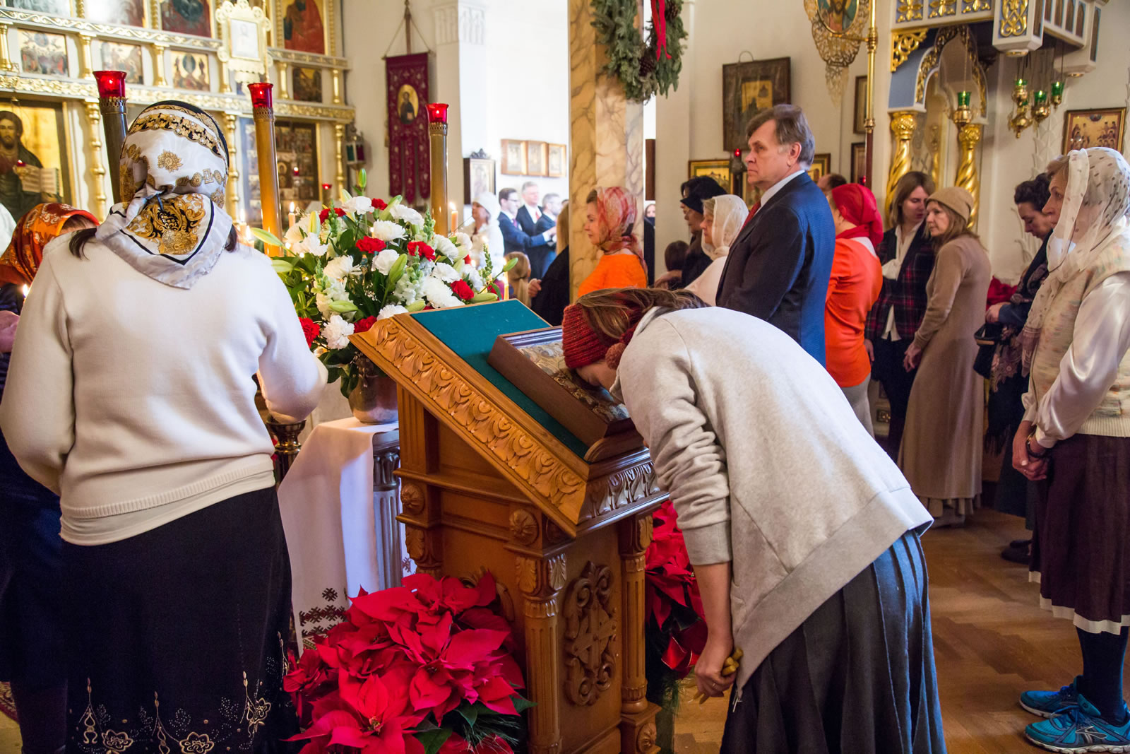 On January 6-7, 2016, the feast day of the Nativity of Christ, Divine Liturgy at the Synodal Cathedral of Our Lady “of the Sign” in New York City was headed by His Grace Bishop Nicholas of Manhattan, Deputy Secretary of the Synod of Bishops of the Russian Orthodox Church Outside of Russia, along with the cathedral clergymen. The Cathedral Choir sang under the direction of Peter Fekula, and a large gathering of worshipers was in attendance. The Kursk-Root Icon of the Mother of God "of the Sign” was present at all the services.