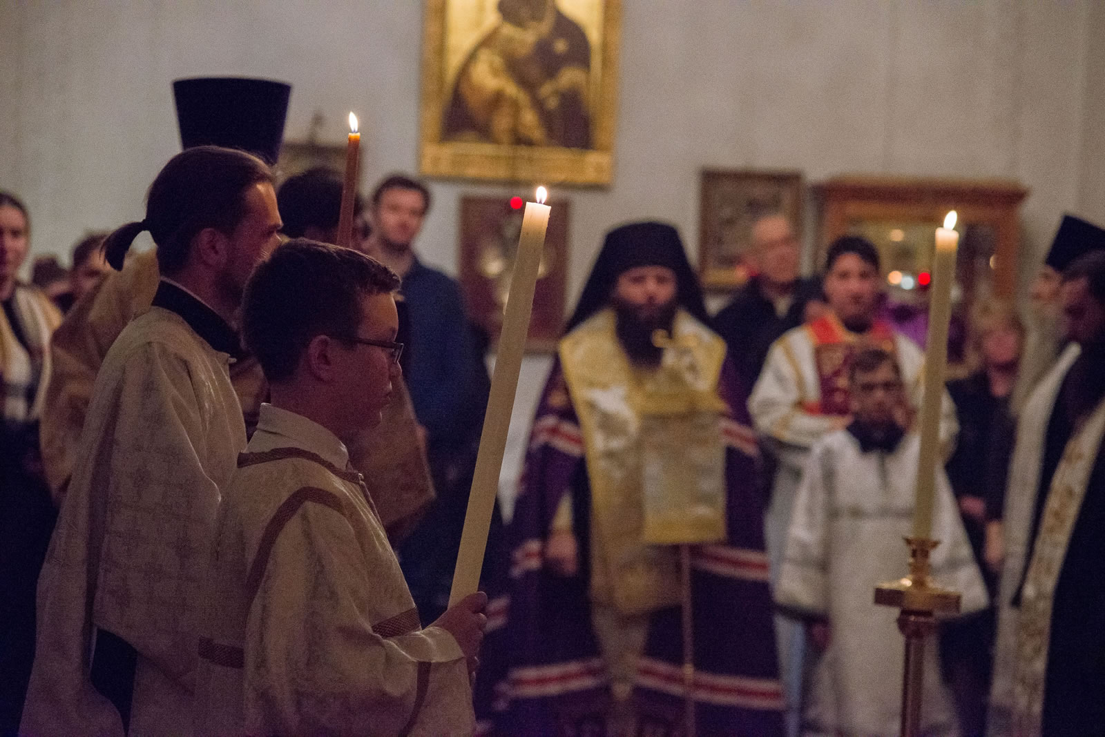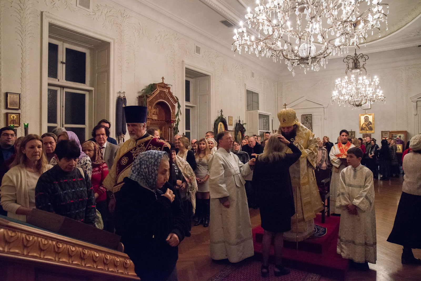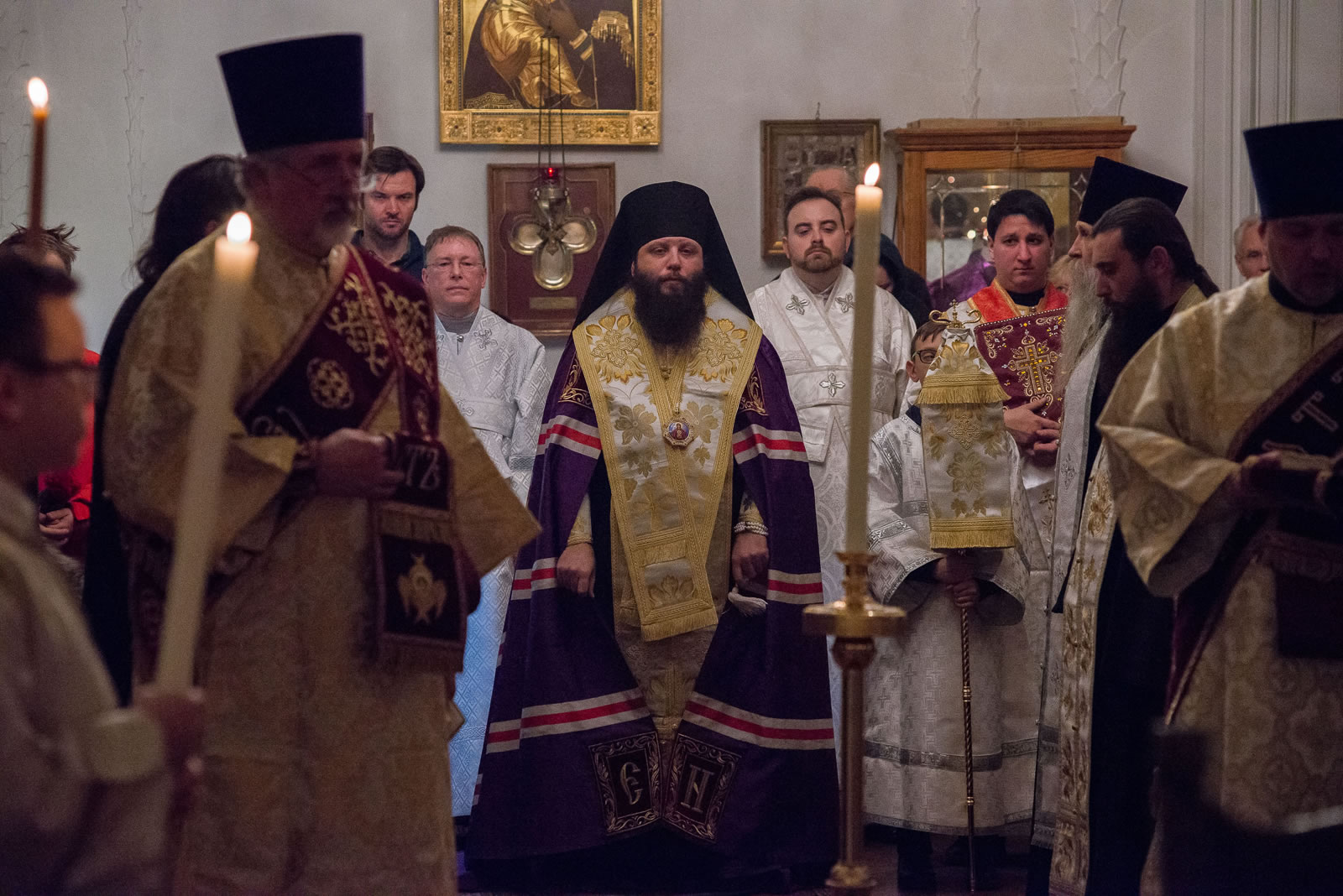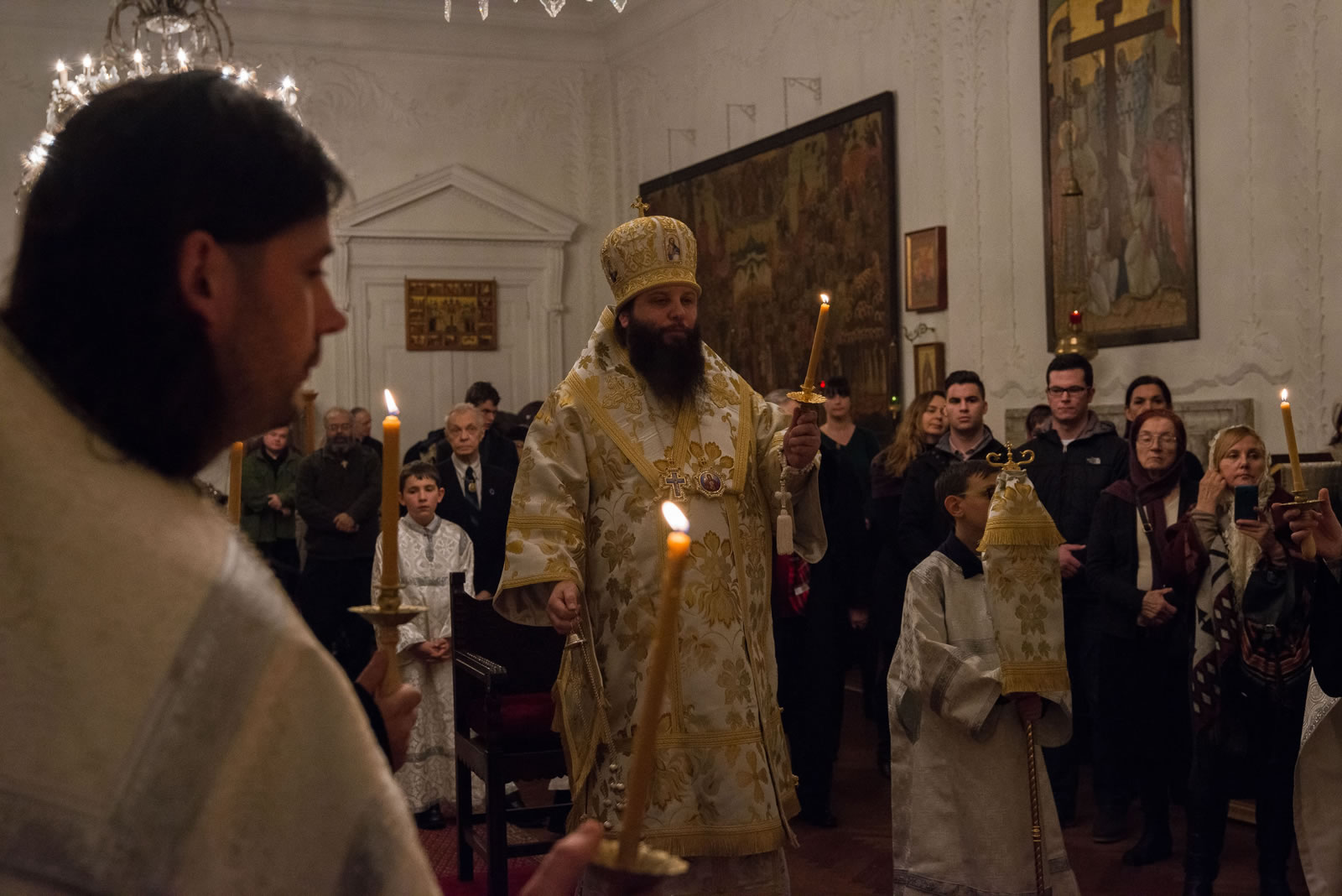 On January 6-7, 2016, the feast day of the Nativity of Christ, Divine Liturgy at the Synodal Cathedral of Our Lady “of the Sign” in New York City was headed by His Grace Bishop Nicholas of Manhattan, Deputy Secretary of the Synod of Bishops of the Russian Orthodox Church Outside of Russia, along with the cathedral clergymen. The Cathedral Choir sang under the direction of Peter Fekula, and a large gathering of worshipers was in attendance. The Kursk-Root Icon of the Mother of God "of the Sign” was present at all the services.