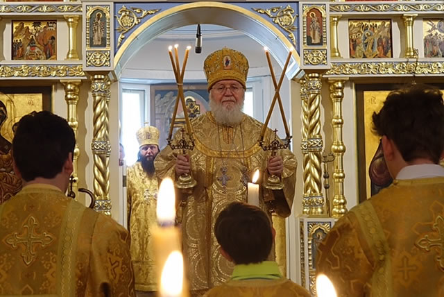 His Eminence was joined by His Grace Bishop Nicholas of Manhattan, Deputy Secretary of the Synod of Bishops, Protopriest Andrei Sommer, Senior Priest of the Cathedral and Vice President of the Synodal Youth Department, and the cathedral clergymen. Singing was the St Vladimir Youth Association Choir under the direction of Paul and Anisia Roudenko, which had recently returned from a missionary trip to Ukraine. Members of the Association also served in the altar. Present at Liturgy was the Kursk Root Icon of the Mother of God "of the Sign.”