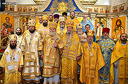 The next day, Metropolitan Hilarion celebrated Divine Liturgy at St John Church in Brooklyn. He was joined by Metropolitan Christopher; Archbishop Nikodim; His Grace Bishop Savva of North America (Georgian Orthodox Church); His Grace Bishop Jerome (Shaw); Fr Alexander; Archimandrite Alexander (Belya), Dean of the Florida Deanery of the Eastern American Diocese and Rector of St Matrona of Moscow Church in Miami, FL; Archimandrite Yuvenaly (Ripas), Chief of the Orthodox Mission in Guatemala (Orthodox Church in America); Protopriest Mark Burachek, Rector of Our Lady of Kazan Church in Newark, NJ; Protopriest Peter Zgoba of the Church of the Mother of God “Unexpected Joy” in Staten Island, NY; Protopriest Vasily Yurin, Rector of St Basil the Great Church in Irshava (Mukachevsk Diocese of the Ukrainian Orthodox Church); Protopriest Nikolai Zhuravsky, Rector of the Church of the Holy Fathers of Svyatogorsk in Mahopac, NY (Georgian Orthodox Church); Protopriest Spyridon Narsia of the Church of the Nativity of the Mother of God Church in Brooklyn (Georgian Orthodox Church); Hieromonk Evtikhy (Dovganiuk) of the Synodal Cathedral of Our Lady “of the Sign”; Hieromonk Photios (Oulanoff) of Intercession Church in Glen Cove, NY; Priest Vasily Kirichuk, Rector of the Chuda Arkhistratig Mikhail Church in the town of Mosty (Rovensk Diocese of the Ukrainian Orthodox Church); Priest Nikolai Gulin of St Stephan Church in Philadelphia, PA (Orthodox Church in America); Priest Alexander Reviuk, Rector of Holy Trinity Church in Brooklyn, NY (Orthodox Church in America); Protodeacon Dimitri Temidis of Holy Virgin Protection Church in Nyack, NY: Protopriest Dionisy Lvov of the Synodal Cathedral, and Deacon Rostislav Zadorozhny of St John the Forerunner Cathedral.