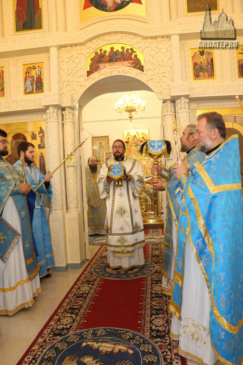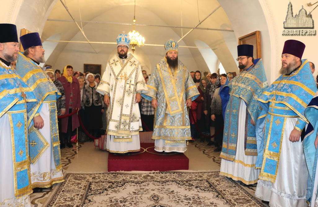 On October 7, 2016, His Grace Bishop Veniamin of Ardatov and Atyashevsk, together with His Grace Bishop Nicholas of Manhattan, Deputy Secretary of the Synod of Bishops of the Russian Orthodox Church Outside of Russia, celebrated Divine Liturgy at St Nicholas Cathedral in Ardatov, Russia. The hierarchs were joined by clergymen of the diocese and clergy of the delegation accompanying the Kursk Root Icon of the Mother of God "of the Sign” on this visit.