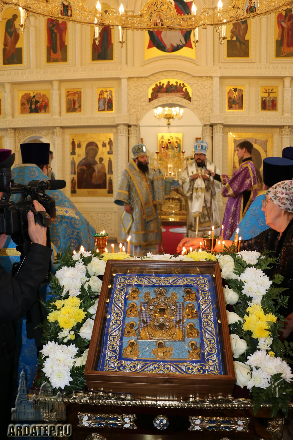 That evening, the people of Atyashevsk welcomed the icon. The clergymen of the region performed a moleben and akathist and anointed everyone with unction. The visit of the Queen of Heaven in the form of the Kursk-Root Icon will long be remembered in the area.