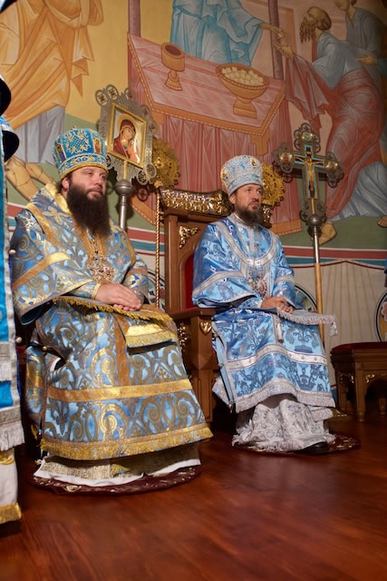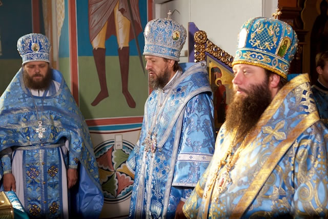 On Saturday, October 8, 2016, the feast day of St Sergius of Radonezh, Divine Liturgy was celebrated at Resurrection of Christ Cathedral in the city of Krasnoslobodsk, Russia, in the presence of the Kursk-Root Icon of the Mother of God "of the Sign.” Celebrating were His Grace Bishop Kliment of Krasnoslobodsk and Temnikovsk, and the caretaker of the icon, His Grace Bishop Nicholas of Manhattan, Deputy Secretary of the Synod of Bishops of the Russian Orthodox Church Outside of Russia. They were joined by Archimandrite Innokenty (Rudenko), Prior of Nativity of the Mother of God Monastery in Sanaksarsk, clergymen of the Krasnoslobodsk Deanery, of the cathedral and the clergymen of the ROCOR delegation. Vladyka Kliment and Vladyka Nicholas then addressed the worshipers who came to venerate and pray before the miracle-working icon.