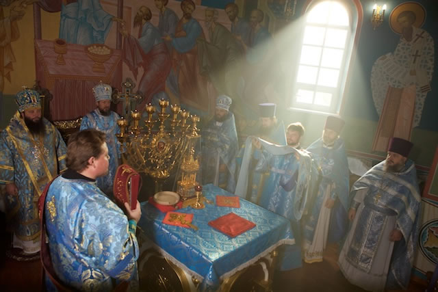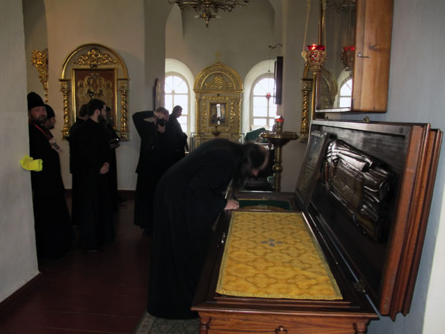 Later that day, Vladyka Nicholas visited the monastery and its cathedral, where he venerated the holy relics of the saints of Sanaksarsk, after which he learned about the history of the monastery.