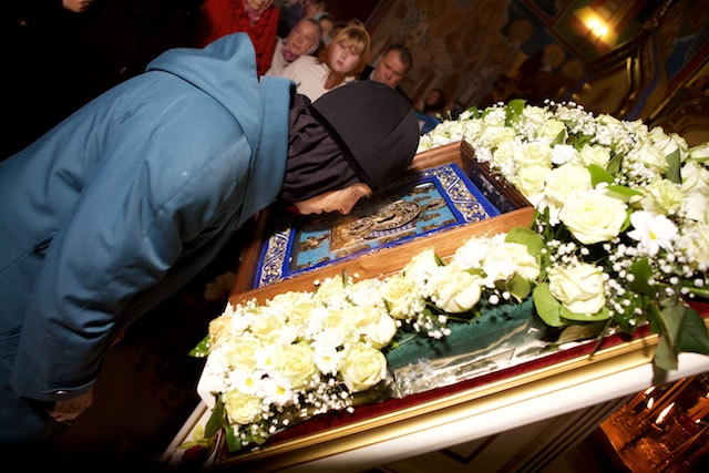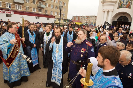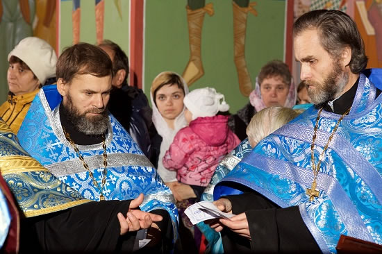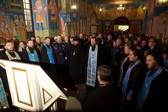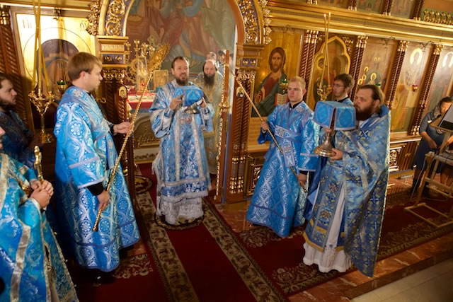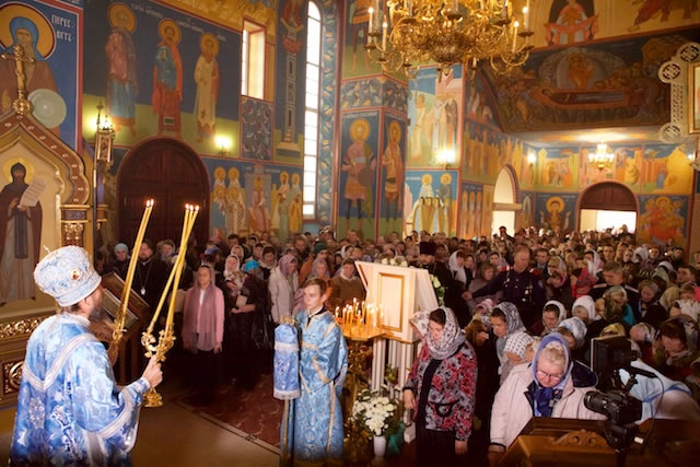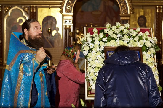A moleben and akathist were performed before the icon, and the woshipers were anointed with holy oil. During the icon’s visit, these services were performed every hour. At 3 pm, the Kursk-Root Icon left the city’s cathedral and was taken to Saransk, accompanied by Vladyka Kliment and his clergymen.
