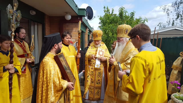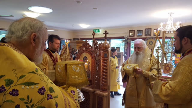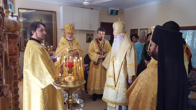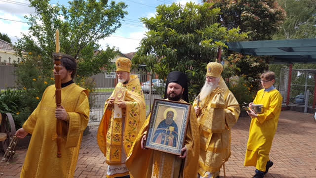 On Tuesday, November 1, 2016, the anniversary of the canonization of St John of Kronstadt by the Russian Orthodox Church Outside of Russia in 1964, and of the Holy New Martyrs and Confessors of Russia in 1981, His Grace Bishop George of Canberra, Vicar of the Diocese of Australia and New Zealand, celebrated Divine Liturgy in the church dedicated to the saint in Dandenong. His Grace was joined by Protopriest Michael Protopopov, Dean of Victoria, and other clergymen. At the end of Liturgy, a moleben was performed with a procession of the cross around the senior-care center, after which a trapeza luncheon was offered.