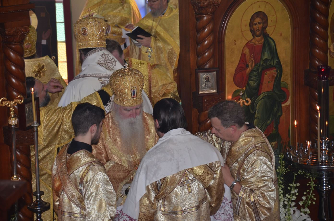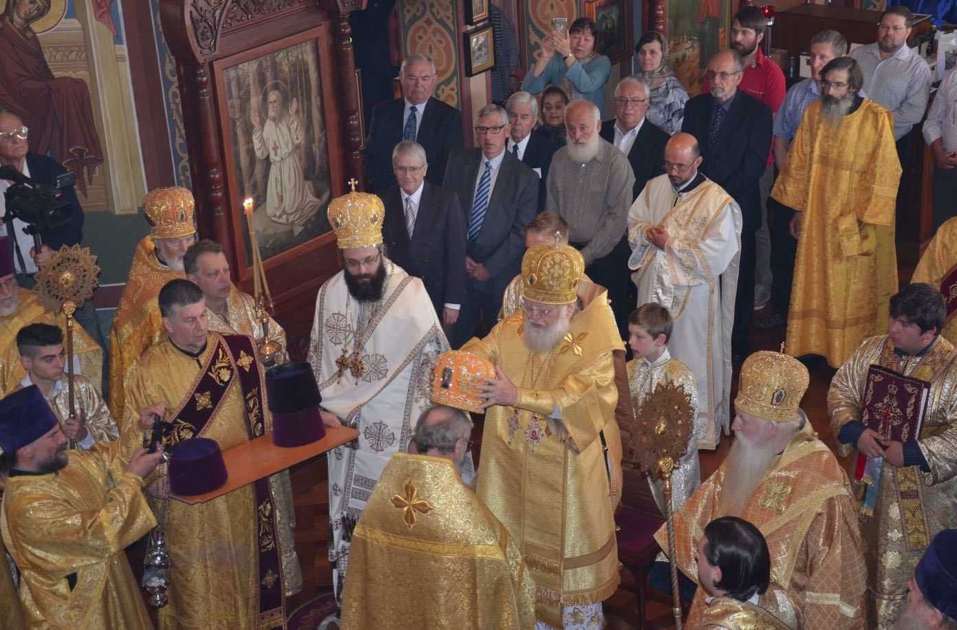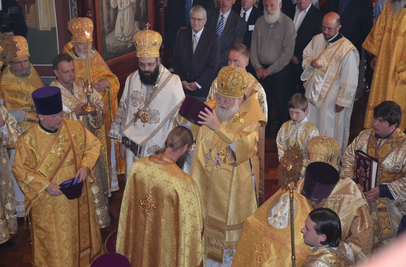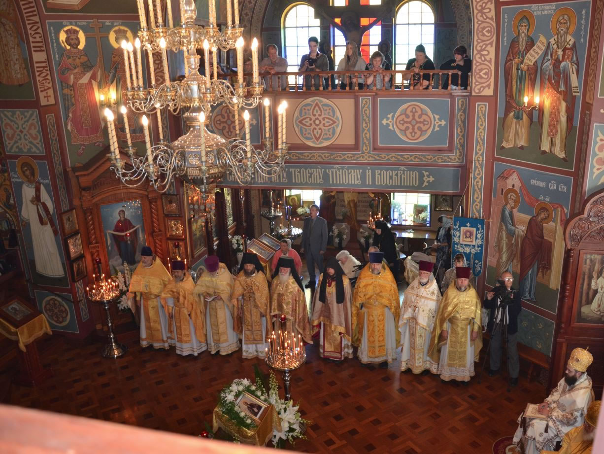 Early on Thursday morning the clergy vested and assembled for the solemn greeting of Metropolitan Hilarion. Joining Vladyka Hilarion were Bishop George and the newly-appointed Ruling Bishop of the Serbian Orthodox Archdiocese of Australia and New Zealand, His Grace Bishop Siluan (Mrakic). Twenty-six priests and seventeen deacons of the Diocese concelebrated at Divine Liturgy. A choir sang under the direction of Eustratius Papageorgiou.