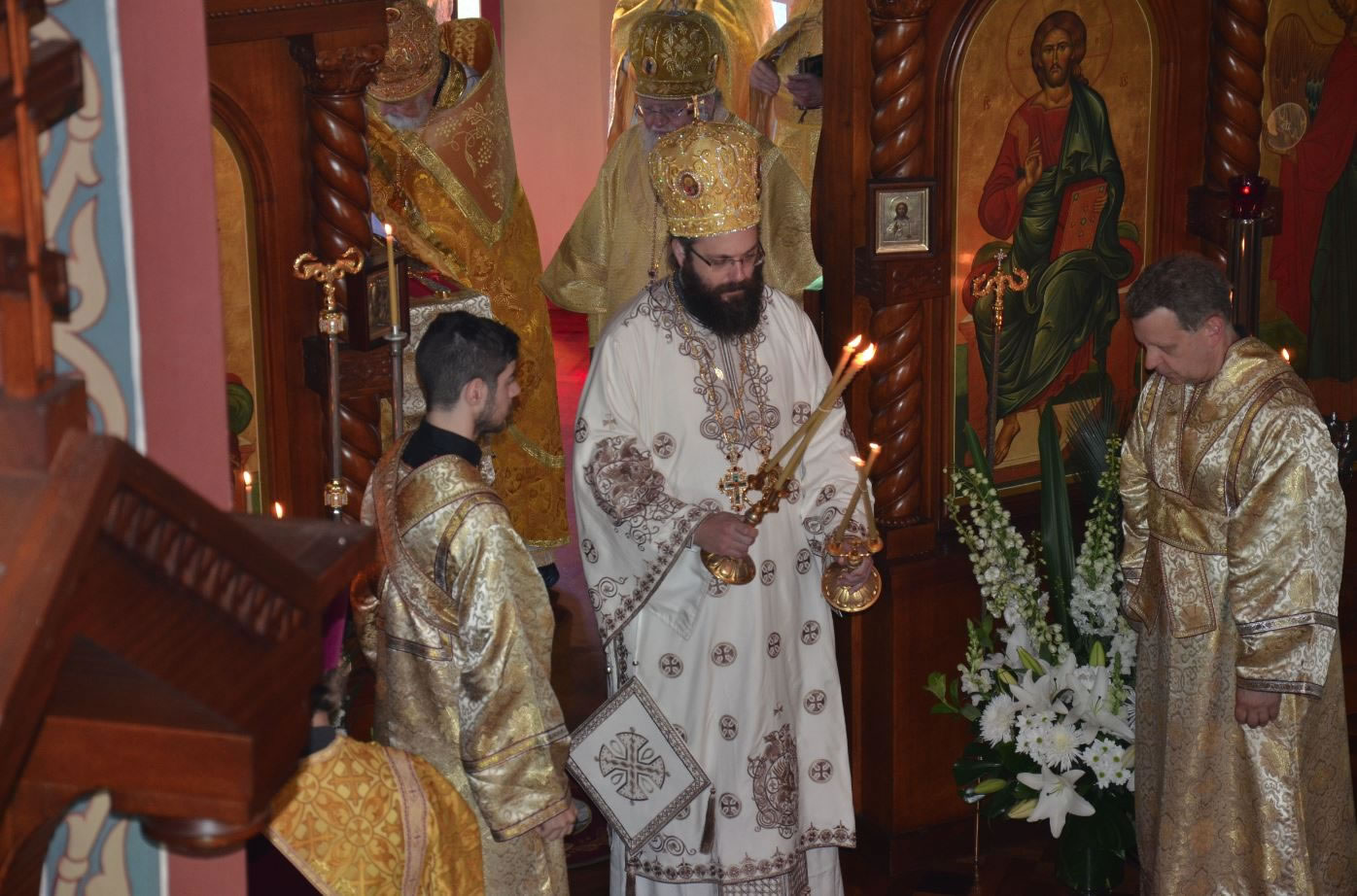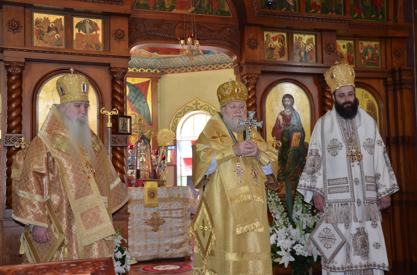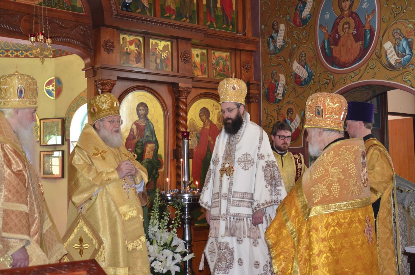 Early on Thursday morning the clergy vested and assembled for the solemn greeting of Metropolitan Hilarion. Joining Vladyka Hilarion were Bishop George and the newly-appointed Ruling Bishop of the Serbian Orthodox Archdiocese of Australia and New Zealand, His Grace Bishop Siluan (Mrakic). Twenty-six priests and seventeen deacons of the Diocese concelebrated at Divine Liturgy. A choir sang under the direction of Eustratius Papageorgiou.