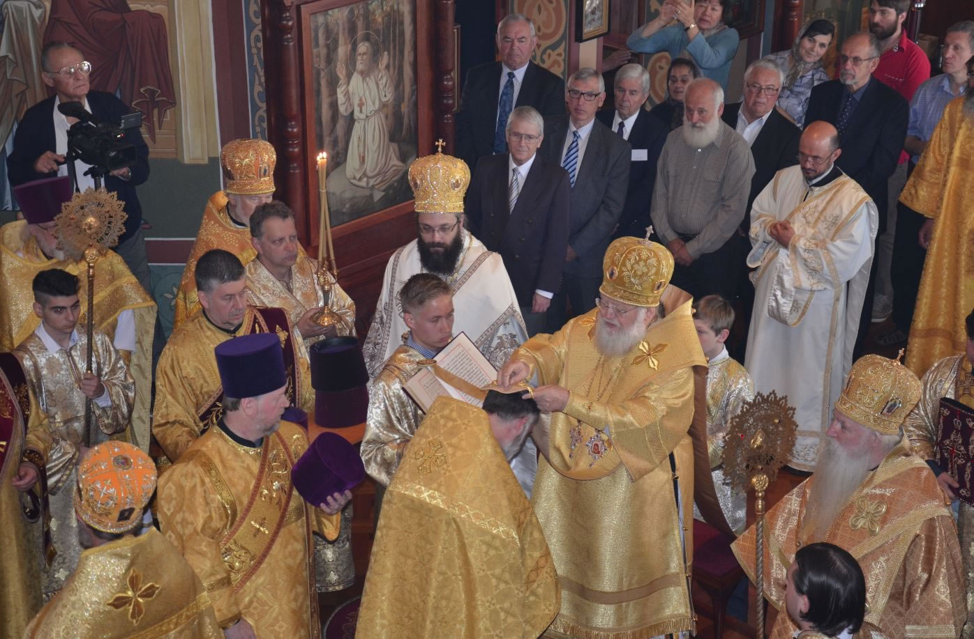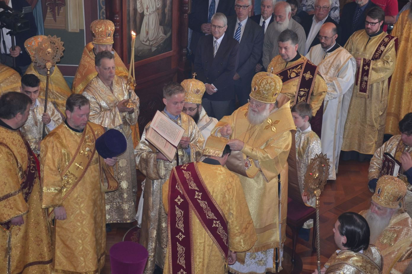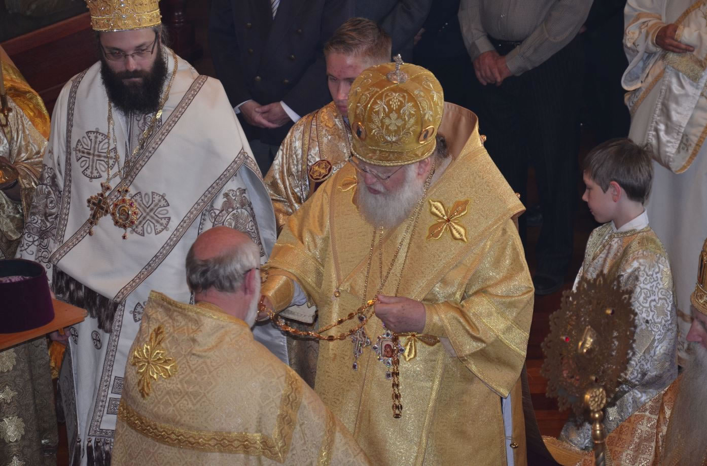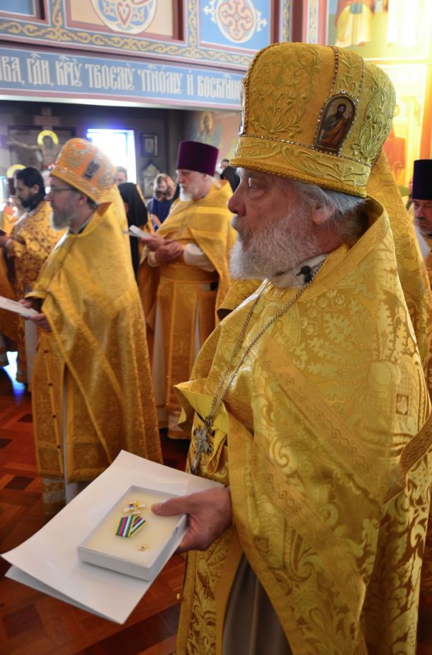 During the minor entrance, a number of clergymen received awards. Archpriest Nicholas Karipoff received the mitre and Priests James Carles and Valentin Basiuk were raised to the rank of archpriest. Priest Peter Hill received the gold pectoral cross. Priests Eugene Kulanov and Barnabas Jellings received the kamilavka and Priest Simon Nekipelov received the skufiya. Deacon Martin Naef was raised to the rank of protodeacon.