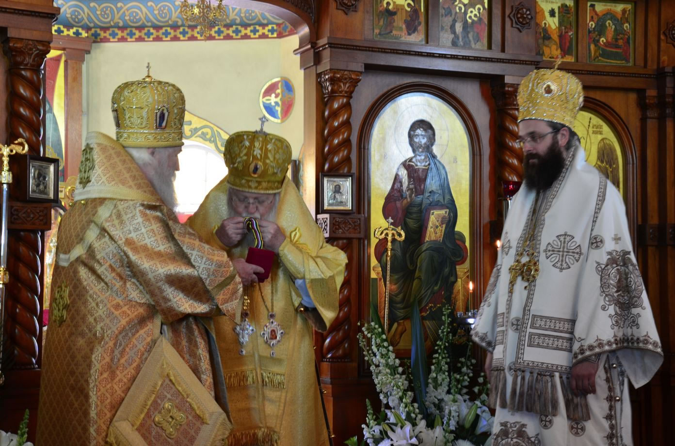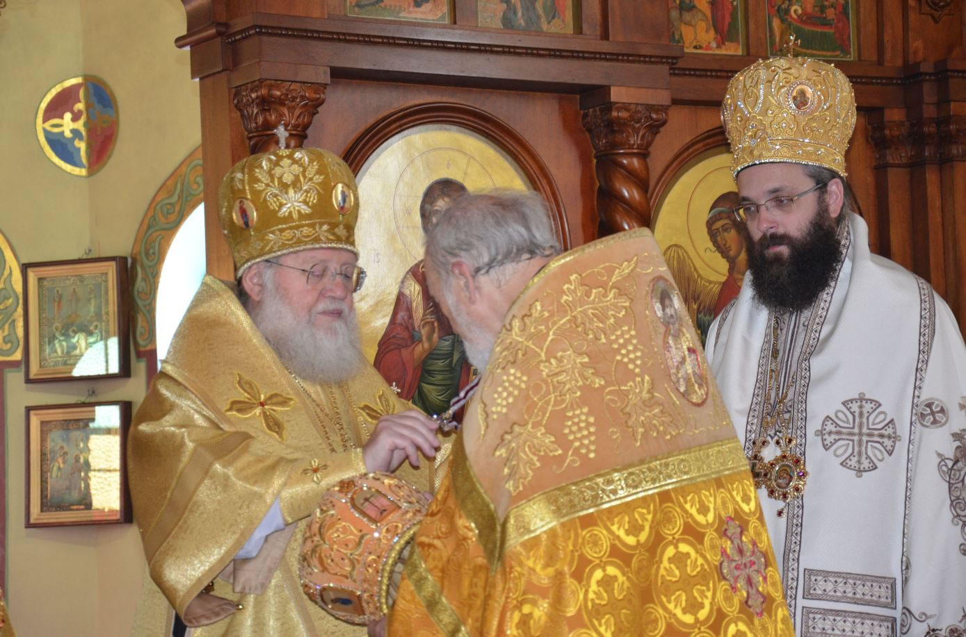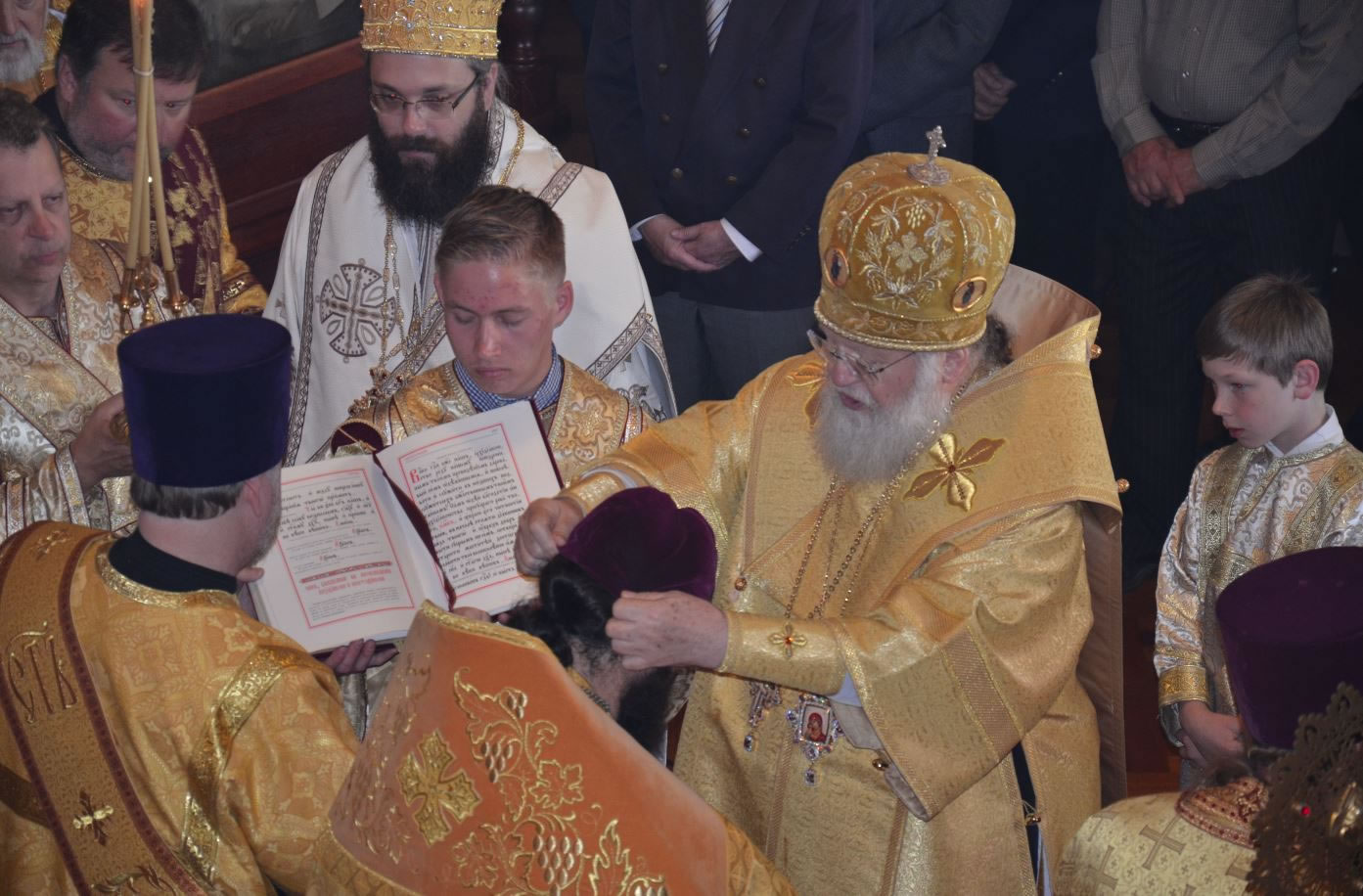 During the minor entrance, a number of clergymen received awards. Archpriest Nicholas Karipoff received the mitre and Priests James Carles and Valentin Basiuk were raised to the rank of archpriest. Priest Peter Hill received the gold pectoral cross. Priests Eugene Kulanov and Barnabas Jellings received the kamilavka and Priest Simon Nekipelov received the skufiya. Deacon Martin Naef was raised to the rank of protodeacon.