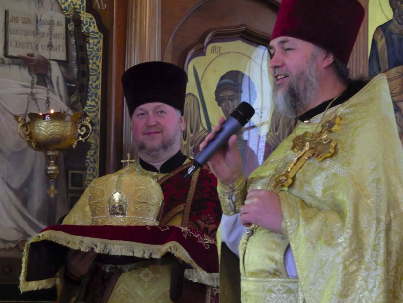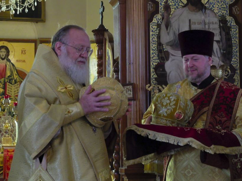 Before the veneration of the cross, Vladyka George and Protopriest George Lapardin addressed Metropolitan Hilarion, and on behalf of the parishioners and worshipers giving him a gold mitre to mark the 20th anniversary of his leadership of the Diocese of Australia and New Zealand.