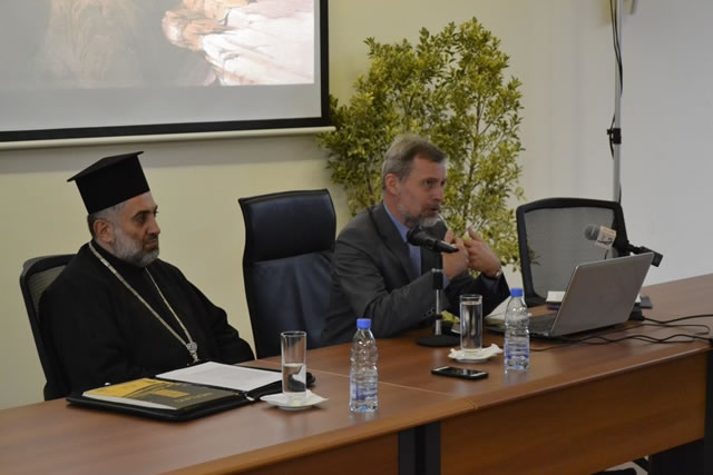The focus of the week was the recently released scholarly work, Arab Orthodox Christian Under the Ottomans, 1516-1831 by Dr Constantin A. Panchenko of the Lomonosov Moscow State University. On Wednesday, November 30, Nicholas Chapman, director of Holy Trinity Publications, gave a lecture entitled “From Antioch to America: Levantine Christianity and the New World 1500-1800,” in which he surveyed the surprisingly vast network of connections between the Orthodox Church in its ancient homeland and the West. The next day, Dr Panchenko drew from the research in his book with a presentation titled, “A Melkite Proto-renaissance: A Forgotten Cultural Revival of the Melkites in the Late 16th Century.” Finally, the two previous speakers joined Dr Souad Slim of the University of Balamand for a seminar on Saturday morning to discuss important facets and themes of the recently-published book. The lectures and panel discussions will be broadcast on Ancient Faith Radio in the near future.