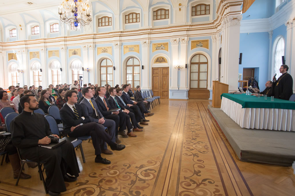 A youth seminar opened in the Blue Hall of the Diocesan Center of the St Petersburg Metropoliate on May 7, 2017, titled “1917-2017: The Fate of Russia and the Church.” Protopriest Andrei Sommer, Vice President of the Synodal Youth Department led a delegation of young people from the Russian Orthodox Church Outside of Russia in the United States, which brought with them the relics of Holy Grand Duchess Elizabeth and Holy Nun Barbara, which will be available for veneration in the city until May 12.