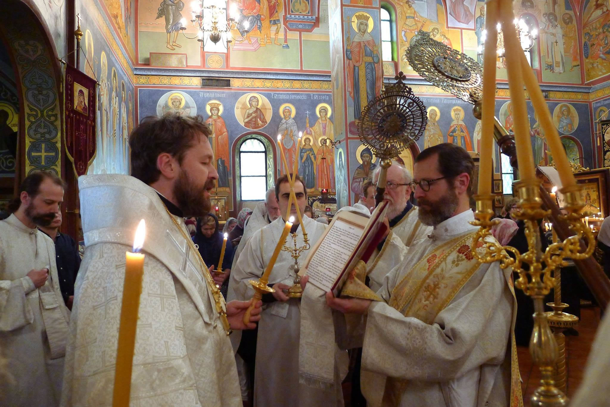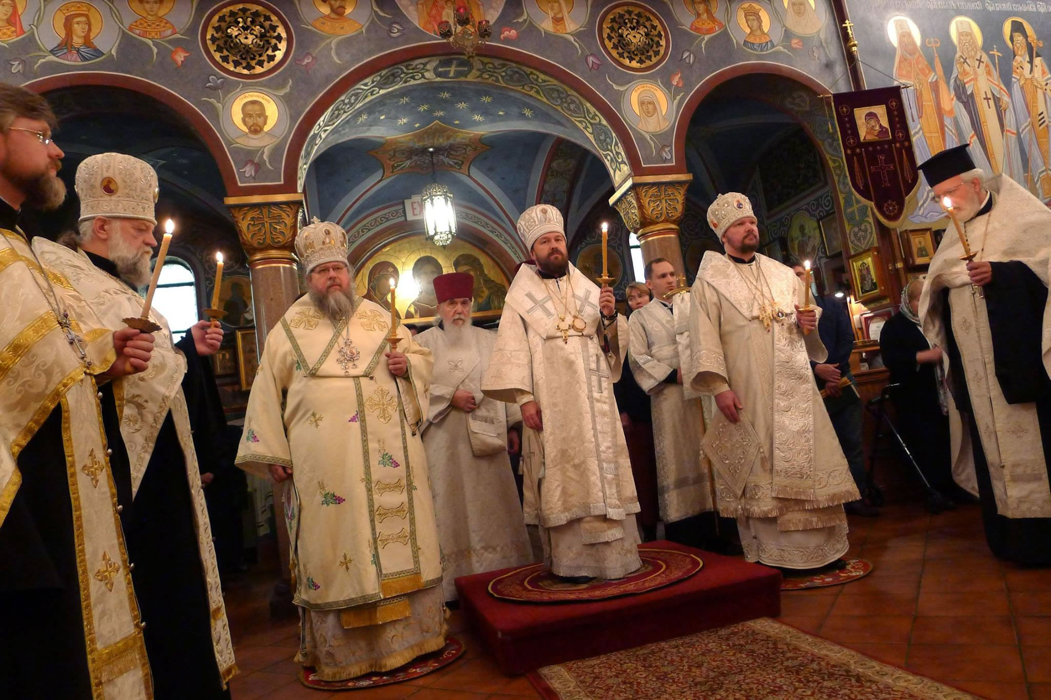 On Saturday, May 13, 2017, as part of a visit to the USA, His Eminence Metropolitan Hilarion of Volokolamsk, President of the Department of External Church Relations of the Moscow Patriarchate, led all-night vigil at St John the Baptist Cathedral in Washington, DC. He was joined in the service by His Eminence Metropolitan Jonah, former Primate of the Orthodox Church in America, His Grace Bishop John of Naro-Fominsk, Administrator of the Patriarchal Parishes in the USA, Protopriest Victor Potapov, Senior Priest of the Cathedral, and his clergymen.