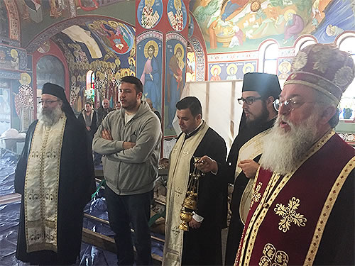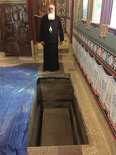 On Friday morning, May 5, 2017, the workers broke the seal of the vault, while Priest Nikolaj Kostur and Heirodeacon Nektarije (Tesanovic) served a Moleban to St. Mardarije at the tomb in the presence of Bishop Longin and Hieromonk Serafim (Milojkovic). Throughout the entire process of exhumation, “Christ is Risen” and other Paschal hymns were sung, both in Serbian and Russian tones, knowing St. Mardarije’s deep love and dedication to both Slavic traditions.